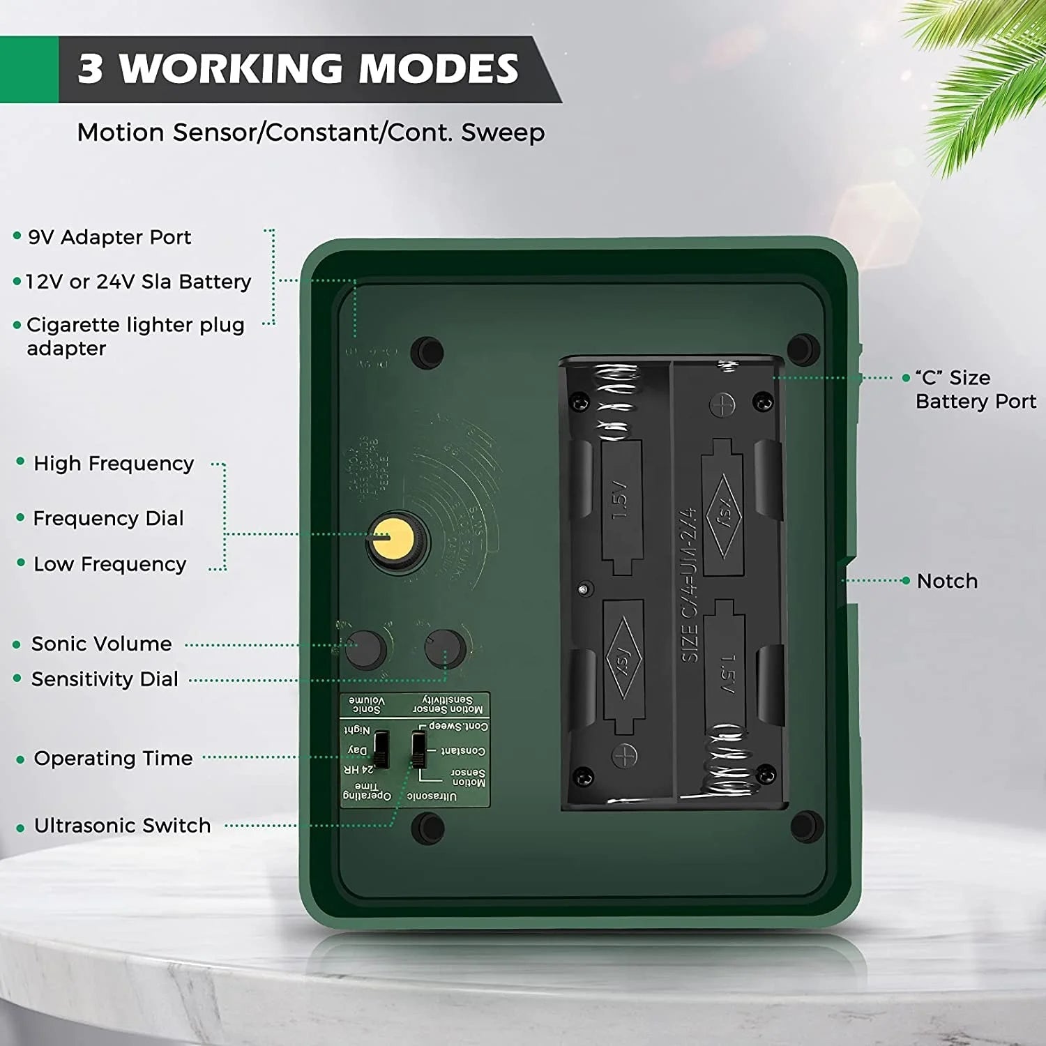 Oavsett om du försöker förhindra hackspett skador, hålla måsar borta från ditt tak, eller avskräcka duvor från att bo, ger denna ultraljudsavskräckare dig säker, konsekvent och underhållsfri skydd.