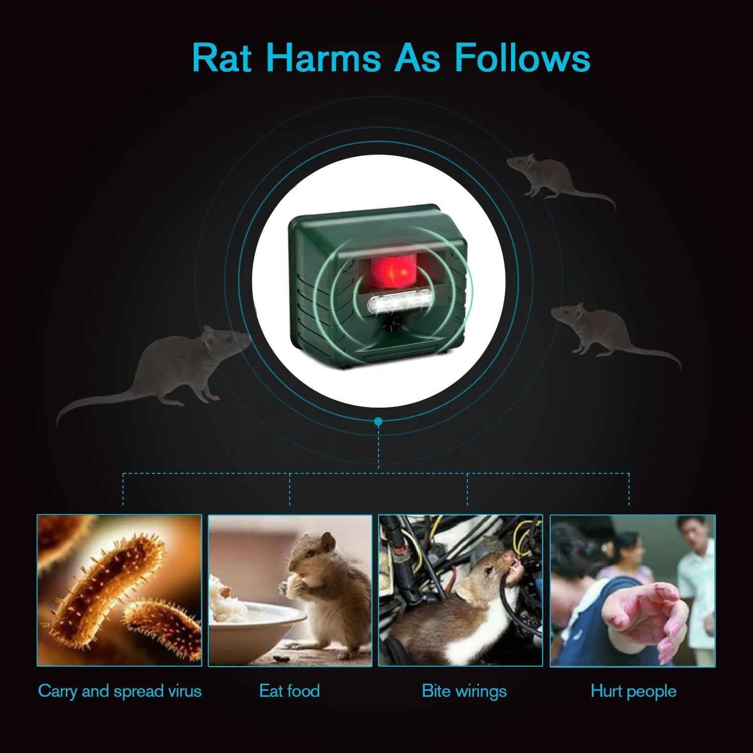 ✔ Dubbel-Läges Försvar: Ultraljud + Blinkande LED-Ljus