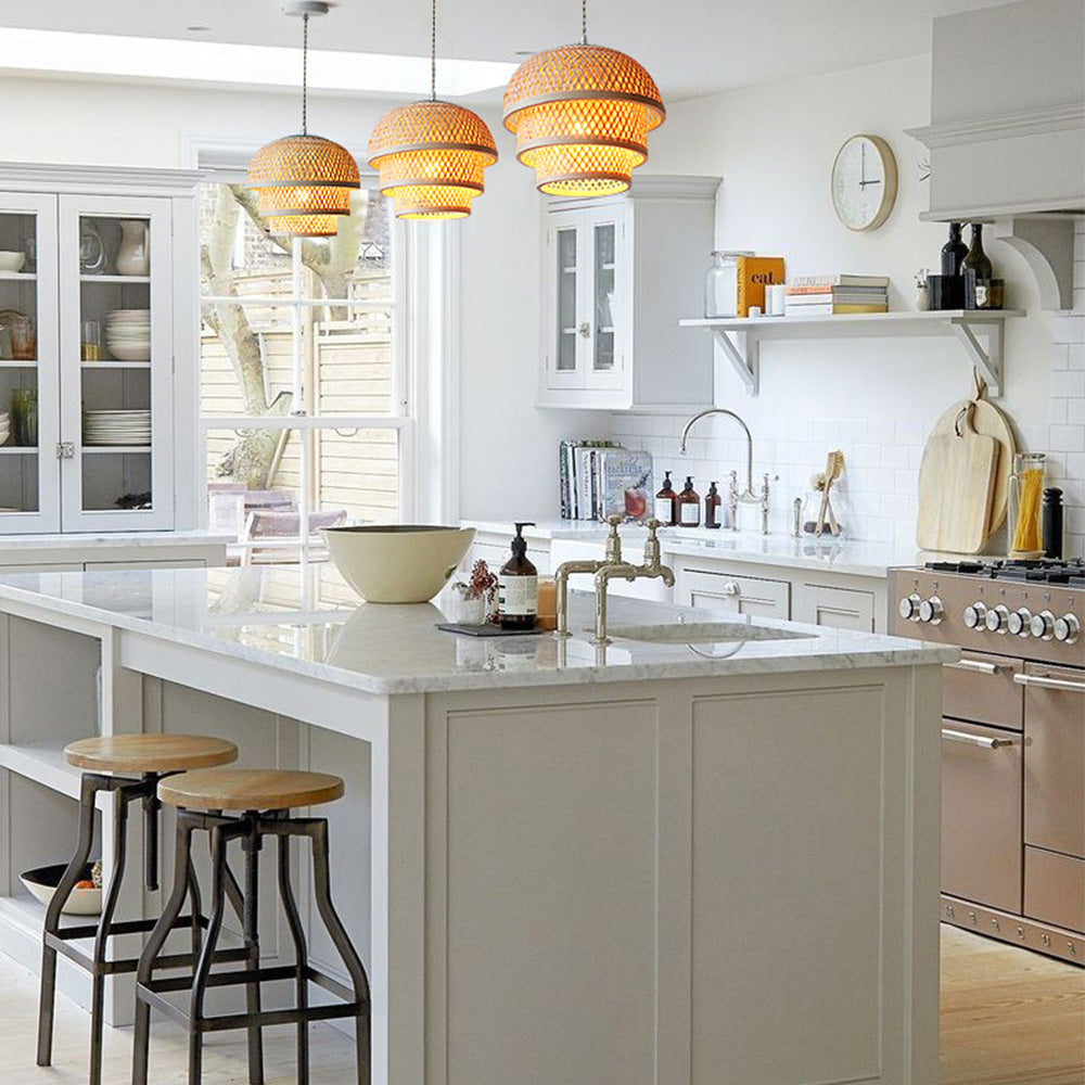 Denna vackra handgjorda bambu taklampa är ett perfekt val för älskare av en naturlig och organisk look. Den unika korgformade designen med bambufinish ger värme och textur till varje rum. Det mjuka ljus som denna taklampa sprider skapar en mysig och inbjudande atmosfär, perfekt för avkoppling eller för att ta emot gäster.