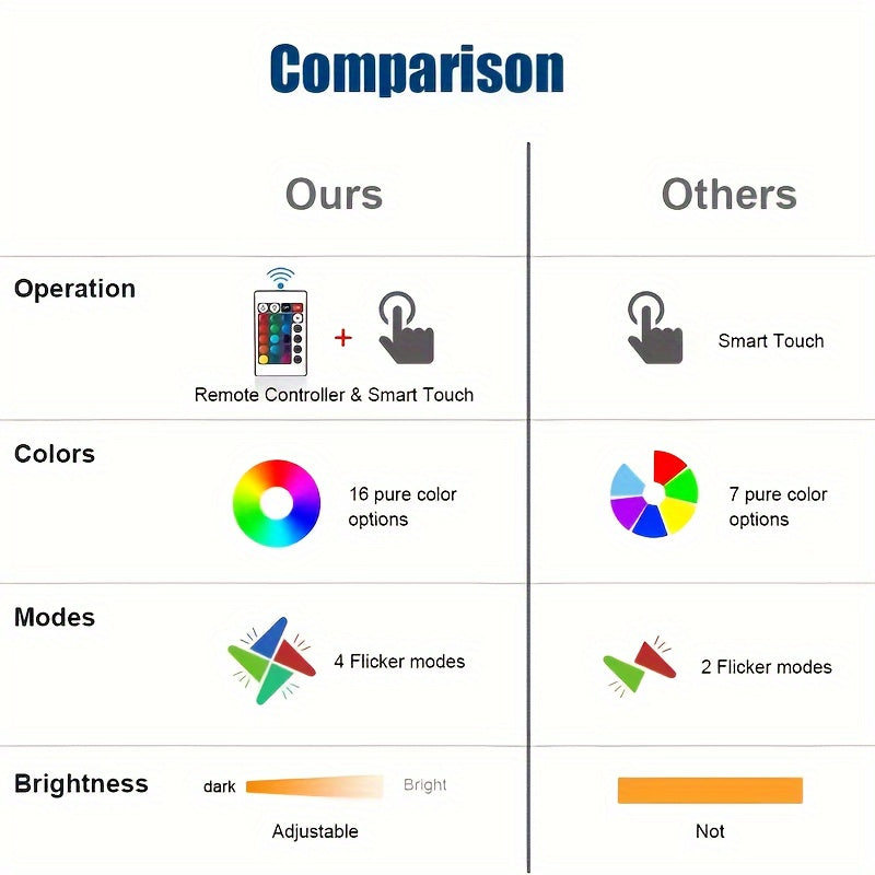 - Enkel fjärrkontroll: Styr ljus och färger från bekvämligheten av din stol eller säng.
