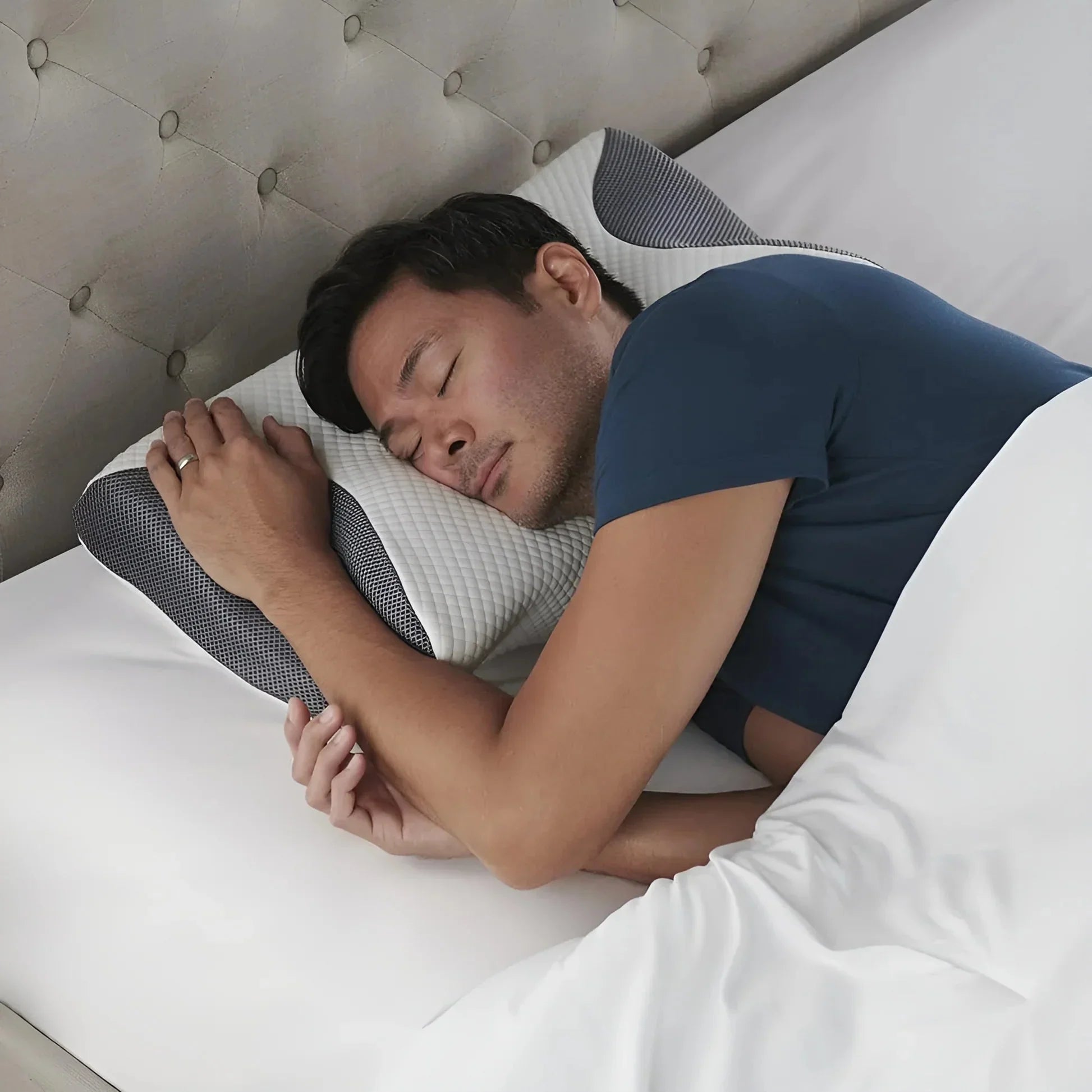 Designad för sid-, rygg- och magliggare, anpassar sig denna mångsidiga kudde till din föredragna sovställning. Dess unika konturer ger personlig support, vilket hjälper dig att njuta av djup, återställande sömn oavsett hur du sover.
