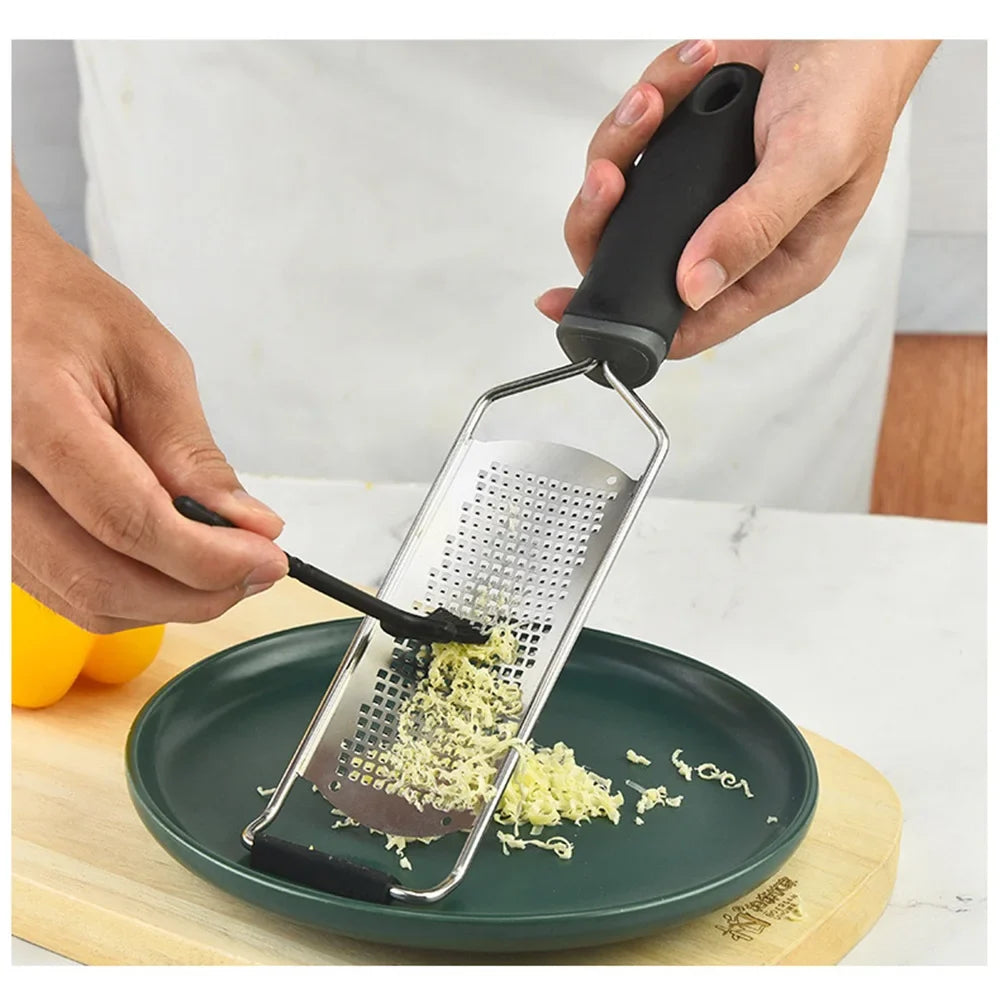 Carvallo ZestPro Multifunktionell Rostfri Rive med Handtag | Ost-, Citron-, Choklad- & Grönsaksrivare | Platt Köksrensare med Finger-skydd