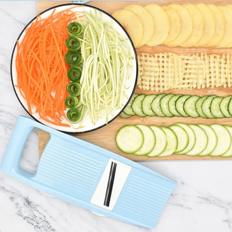 ✨ 5 funktioner i en enhet: Skala, hyvel, tärna, julienne och riv – allt precisa inställningar från 1 till 8 mm tjocklek.