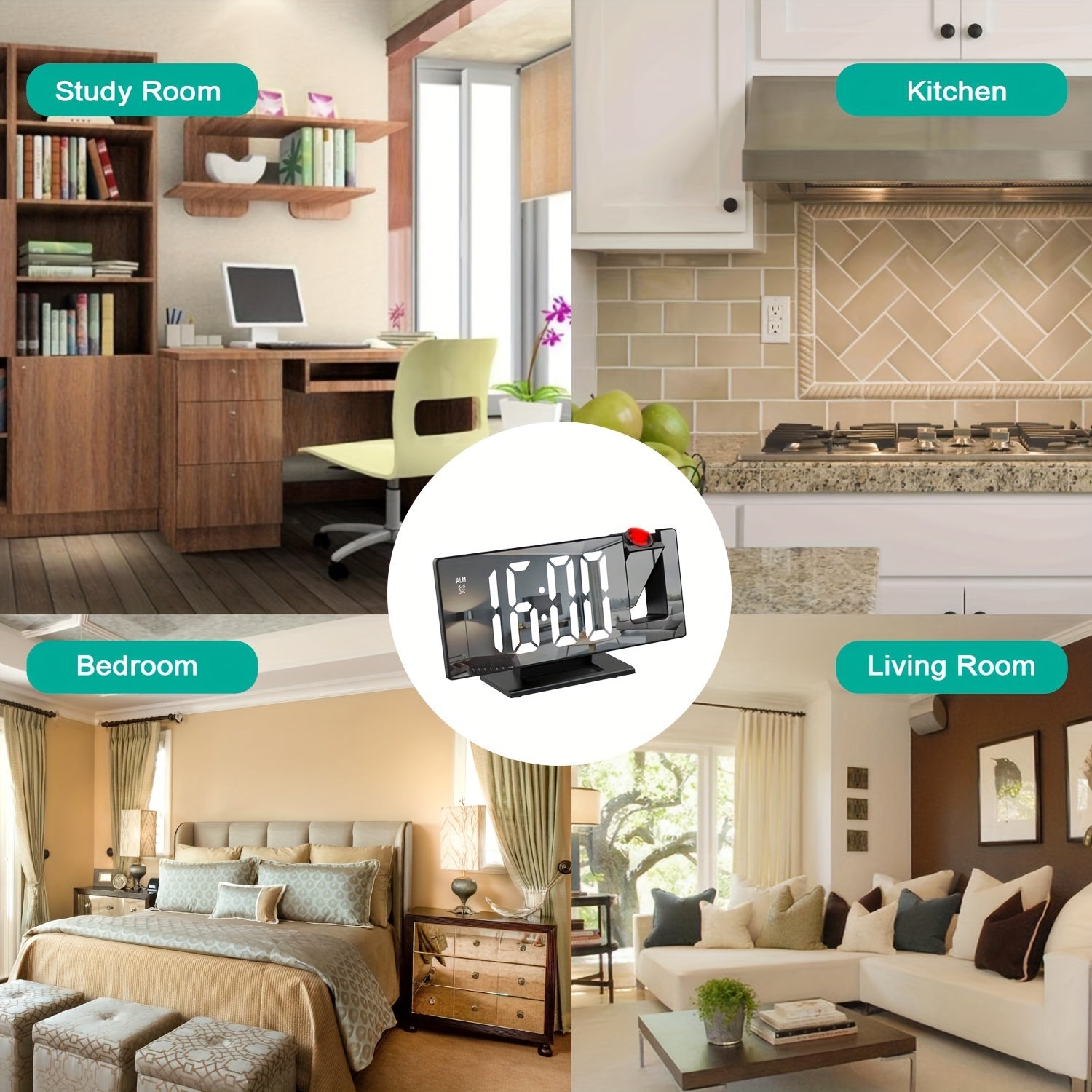 LED-projektionsväckarklocka med 180° justerbar projektion – Klar display och snooze-funktion för sovrum eller kontor