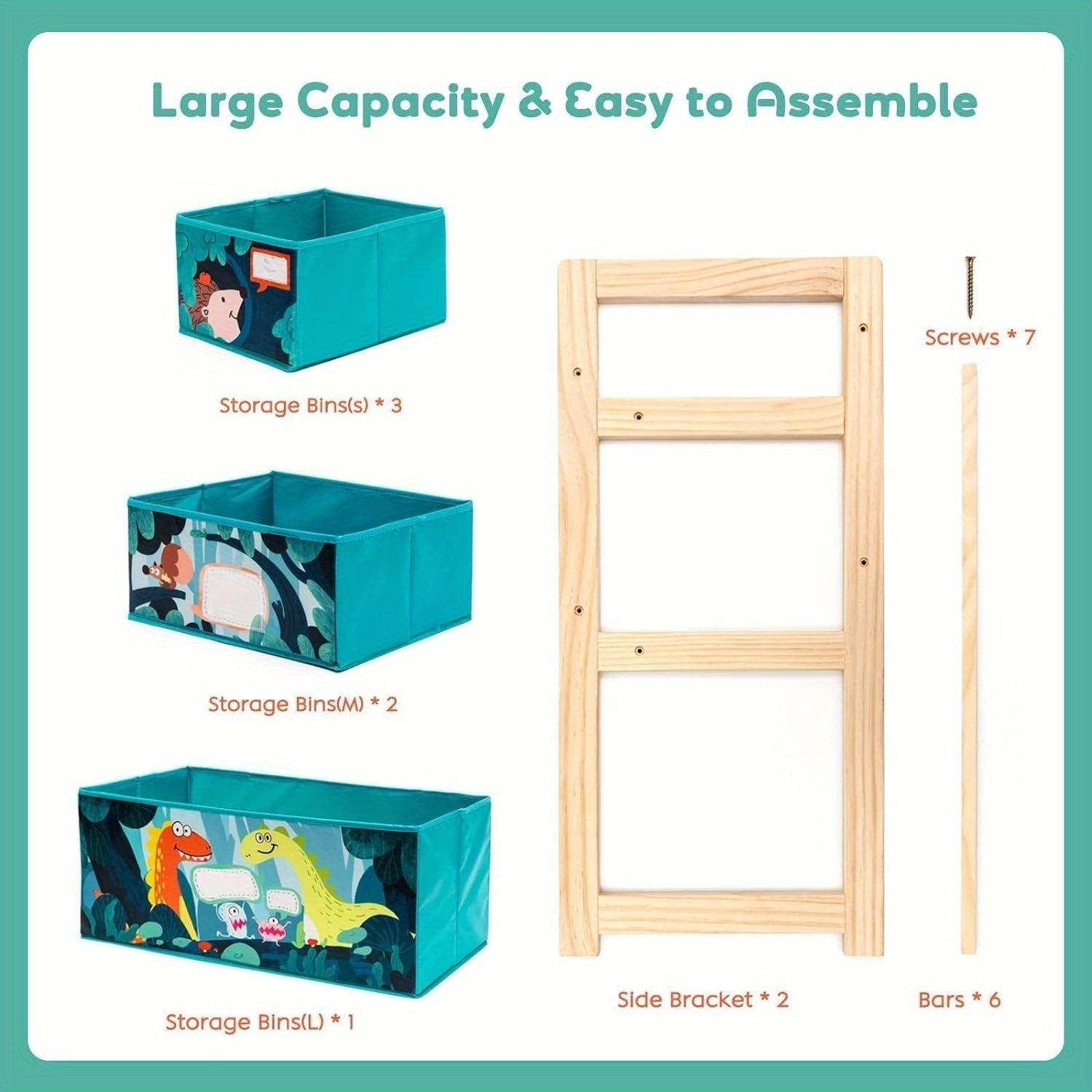 Denna multifunktionella leksaksorganisatör ger den perfekta lösningen för att förvara leksaker, böcker och andra nödvändigheter i barnrummet. Den träramen har tre nivåer med tygförvaringslådor som är lättillgängliga för barn. Det glada djurtemat gör denna organisatör inte bara funktionell utan också en rolig tillskott till rummet. Organisatören hjälper till att upprätthålla ett prydligt och organiserat utrymme, idealiskt för barn i alla åldrar.