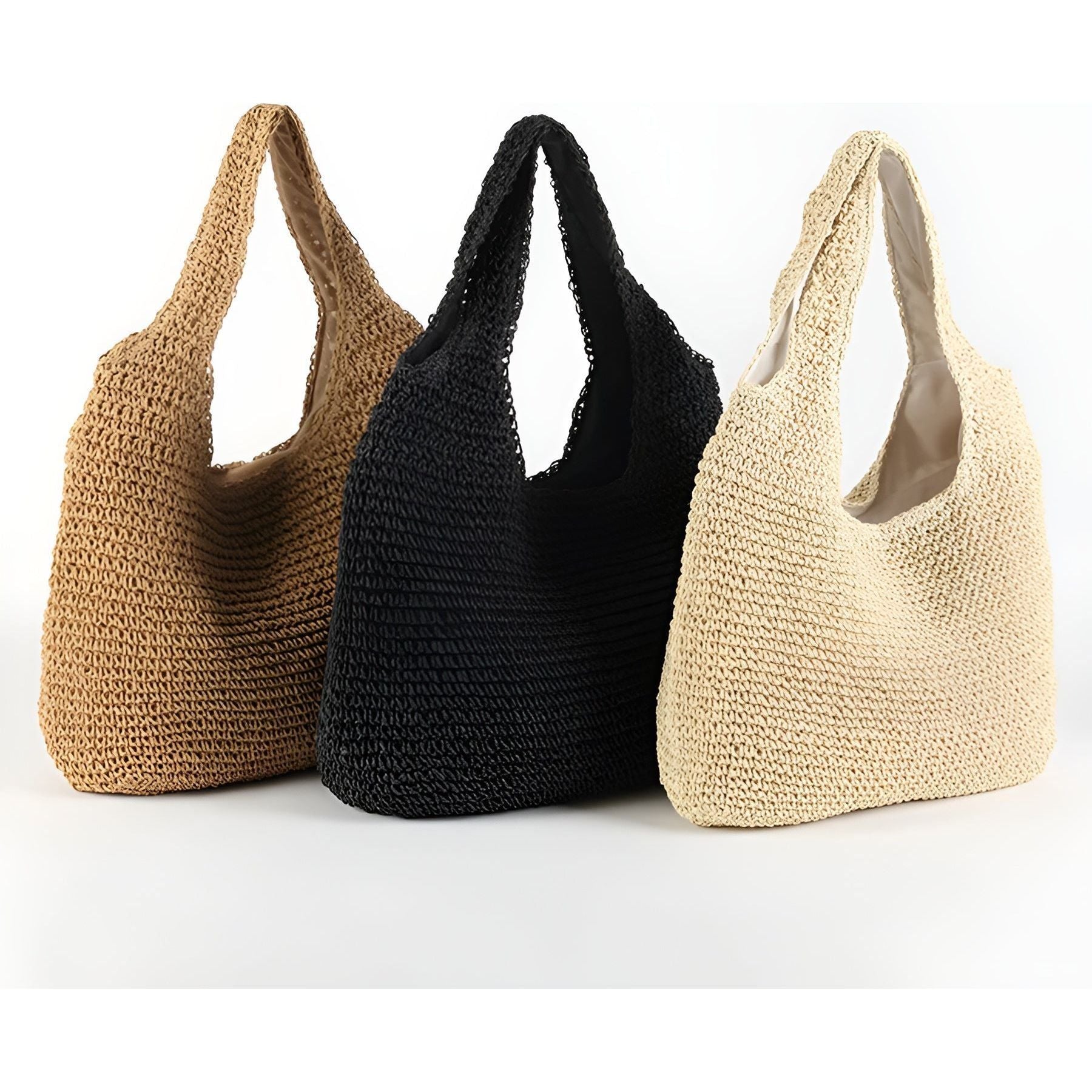 Fundera på hur du kan förvara dina saker säkert och stiligt i sommar? Handväskan Lisele är den perfekta följeslagaren. Med sin stora kapacitet kan den enkelt omvandlas från en kontorsväska till en strandväska, vilket gör den idealisk för alla sommaräventyr. Den är lätt, mångsidig, inte tung och passar till varje outfit. Tillverkad av hållbart halm och foder av polyester, kombinerar handväskan tidlös elegans med praktisk funktionalitet!