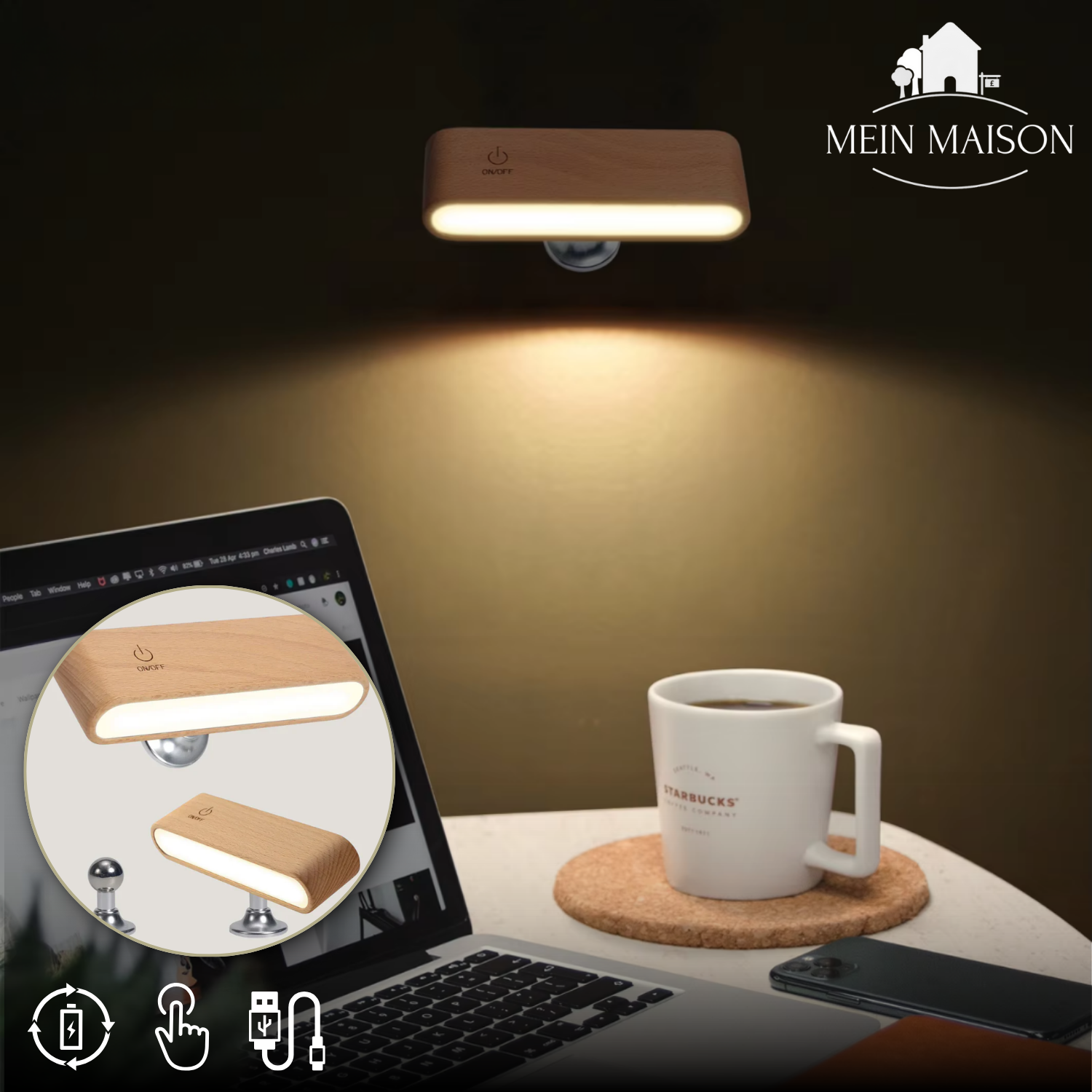 LumaWood™ är en trådlös LED-trämplampa som perfekt förenar design och funktion – roterbar, elegant och flexibel att använda.