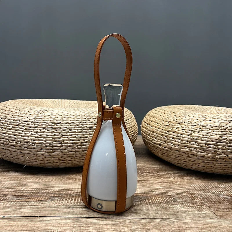 LumeCarry – Bärbar LED Flasketta med Läderhandtag