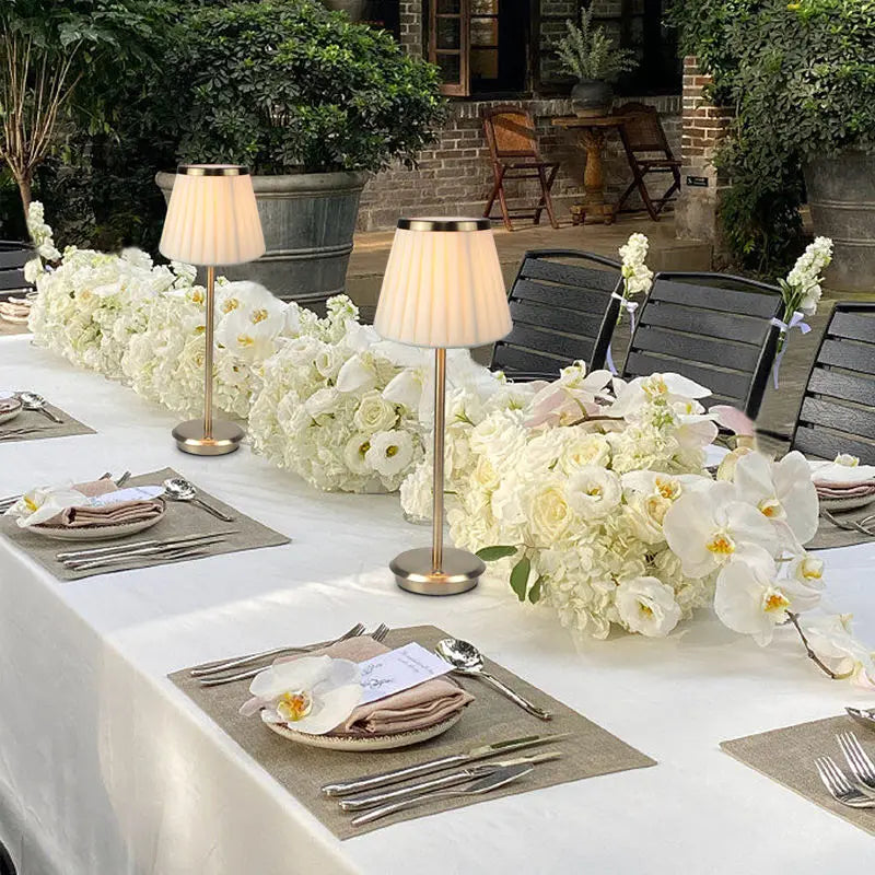 Förena elegans och funktionalitet med LumiCopper Trådlösa Kopparbordslampan. Denna raffinerade design i koppar och den veckade lampskärmen ger en varm och stämningsfull ljusfördelning. Perfekt som nattlampa, som dekorativ belysning i vardagsrummet eller som en stilfull detalj på matbordet. Tack vare det uppladdningsbara batteriet kan du enkelt placera lampan var du vill, utan krångel med sladdar.