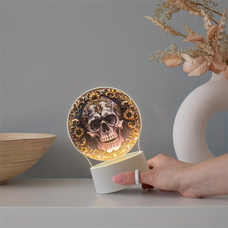 LumiSkull - USB Schedellampa, Färgglad Akryl Bordslampa för Sovrum och Halloween Dekoration