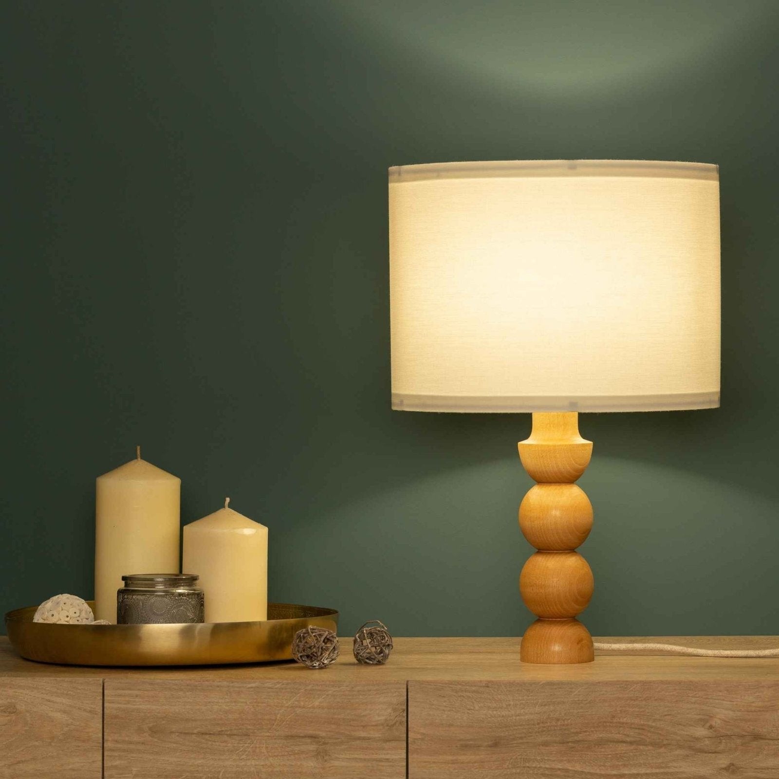 LumiWood – Trä Bordslampa med Tygskärm, Skandinavisk Nattbordslampa
