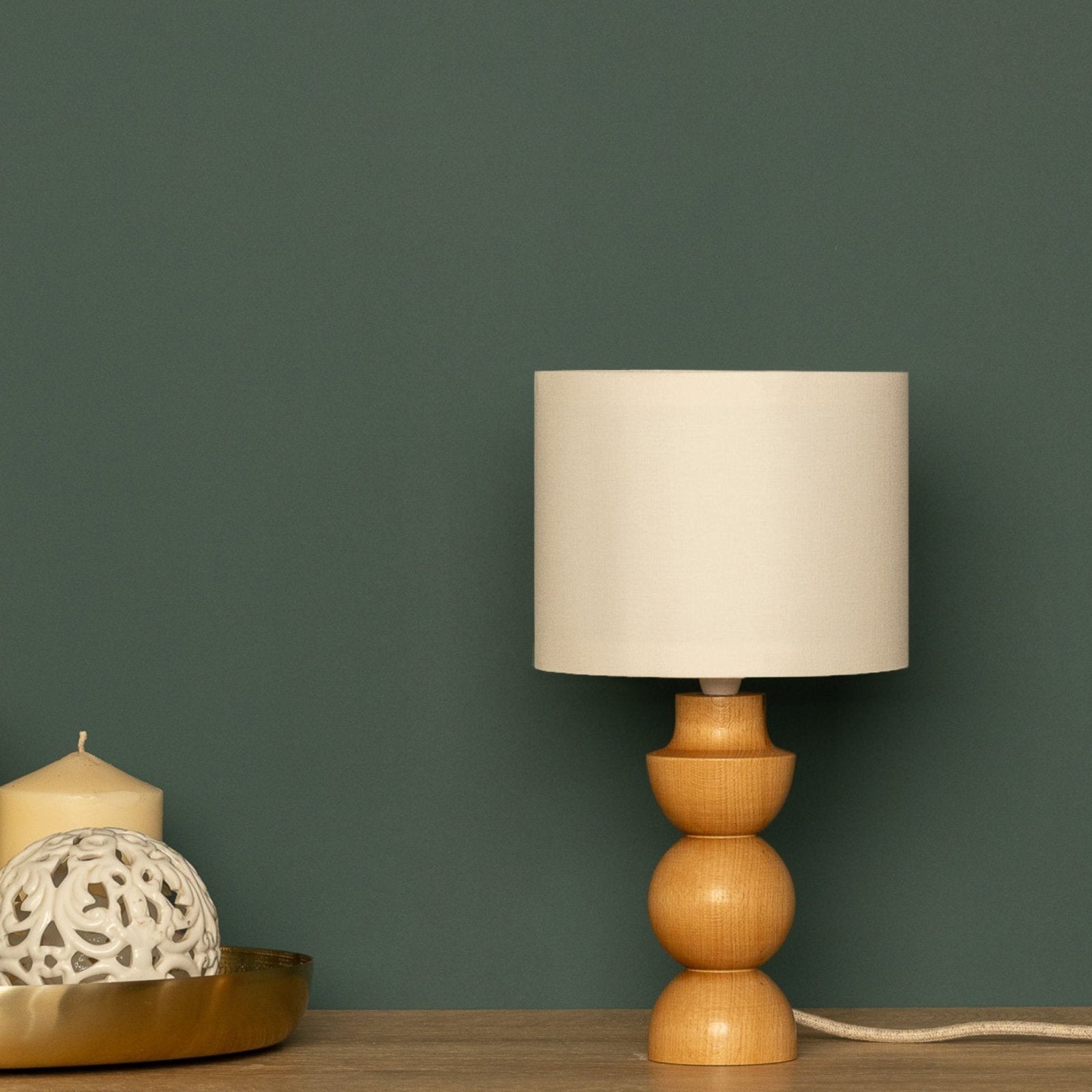 Skapa värme och stil i ditt hem med LumiWood Bordslampa. Denna handgjorda lampa av massiv bokträ förenar tidslös skandinavisk design med naturliga material. Det mjuka ljuset och den eleganta tygskärmen gör denna lampa idealisk som nattlampa, stämningslampa i vardagsrummet eller som dekorativ accent i din inredning.