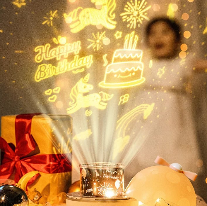 ✔ Funktion: Roterande LED-projektor + nattlampa