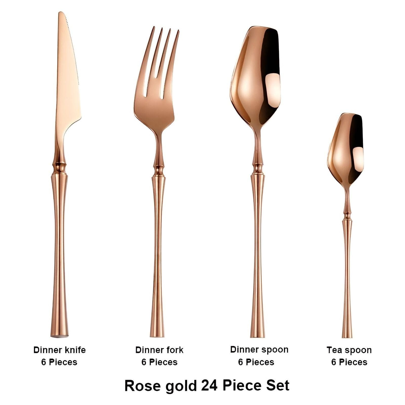 Förutom sin imponerande look övertygar LuxeDining bestickset med sin hållbarhet och funktionalitet. Varje bit är noggrant polerad för att säkerställa en strålande finish. Dessutom är setet lättskött och behåller sin ursprungliga skönhet även vid frekvent användning. Ge ditt matbord den elegans det förtjänar!