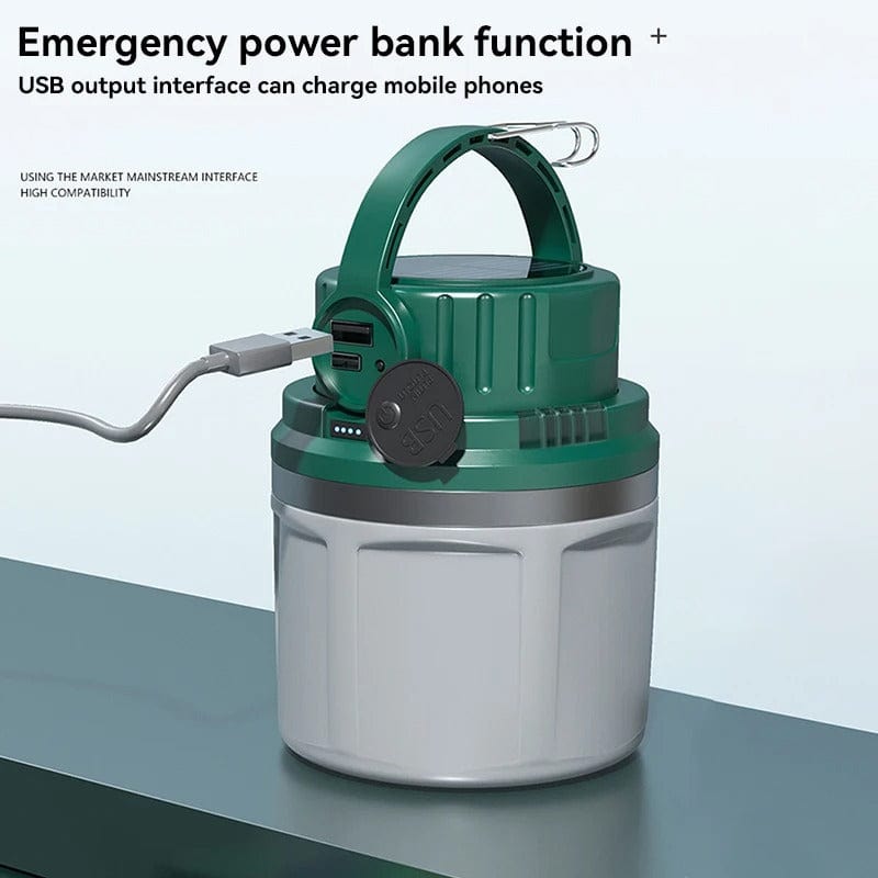 Bärbar LED Campinglampa - Solenergiladdad - Vattentålig - Kompakt design - Ideal för utomhusäventyr - Nödanvändning