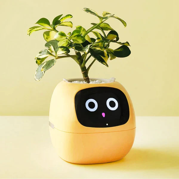 Krukkans ansikte ändrar uttryck beroende på växtens behov och varnar dig när den behöver vatten, mer ljus eller annan omvårdnad.