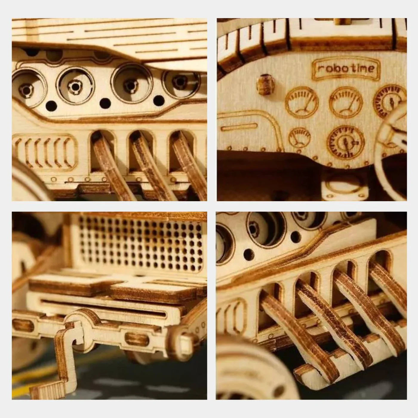 RetroRacer-satsen fångar essensen av gamla Grand Prix-bilar, vilket gör den till en unik tillskott till varje samling. Dess självmonteringsfunktion ger en givande utmaning, medan de funktionella hjulen tillför en touch av realism. Oavsett om det är för personlig njutning eller som en omtänksam present, kommer detta träpussel säkerligen att väcka glädje.