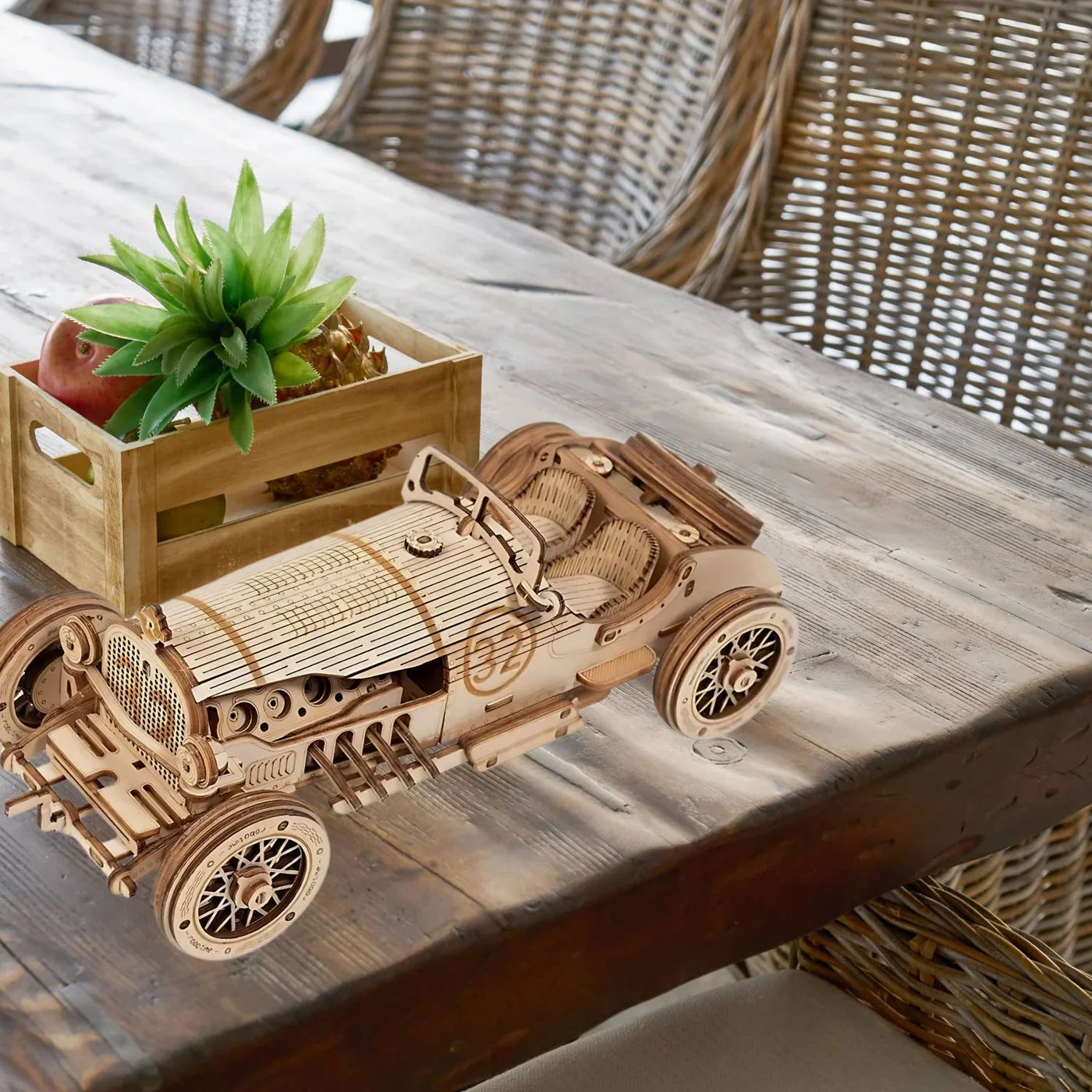 Res tillbaka i tiden med RetroRacer - Wooden Grand Prix Car Building Kit. Detta DIY-modellbyggset är utformat för att återskapa de klassiska racingbilarnas elegans och kraft. Med de detaljerade bitarna kan du bygga din egen veteranbil, komplett med rörliga hjul och autentiska detaljer. Satsen är perfekt för både racingentusiaster och pusselälskare och erbjuder timmar av spännande samlande och ett vackert resultat som kan visas upp.
