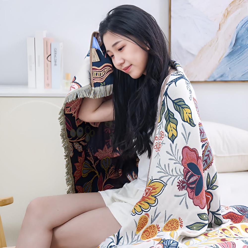 Vår Vändbar Trädgårdsblomma Badhandduk, tillverkad av 100% ren bomull, är lätt, absorberande och snabbtorkande. Med livliga blommönster och en vändbar design är den perfekt för badtid, strandresor eller bara för att koppla av hemma. Idealiskt för året runt komfort.