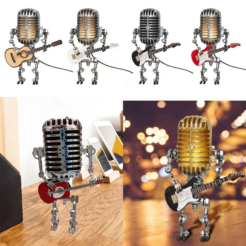 RhythmLight stickar ut med sin karaktäristiska design med en robot som håller en gitarr, vilket ger ett roligt och finurligt inslag i din inredning. Den justerbara dimmbara belysningsfunktionen gör att du enkelt kan ställa in stämningen för varje tillfälle, oavsett om du är värd för en sammankomst eller njuter av en lugn kväll. Denna lampa är tillverkad med material av hög kvalitet och lovar hållbarhet utan att kompromissa med stilen.