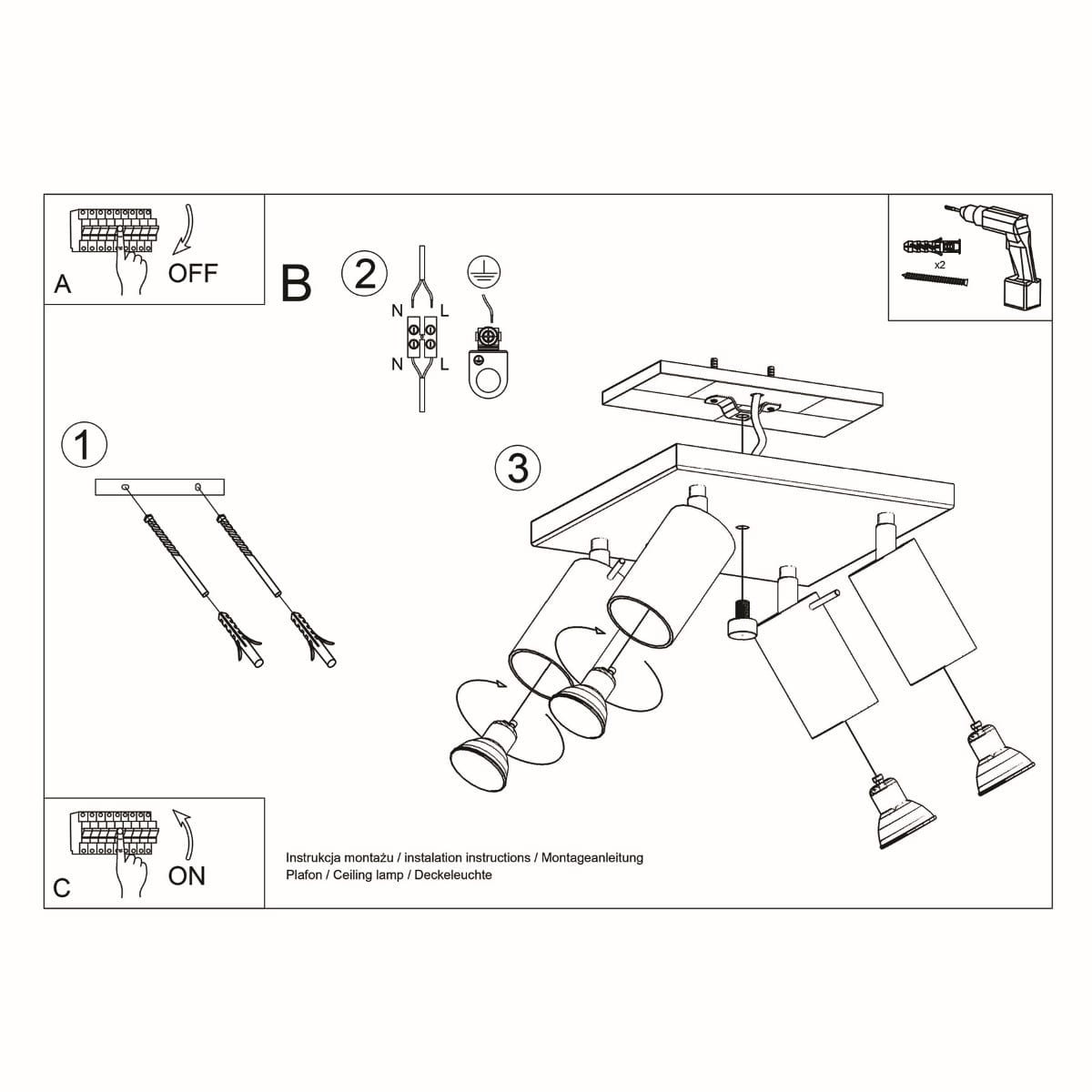 - Ljuskälla: GU10, 4x max 10W LED, ~230V, 50Hz