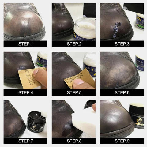 Dina använda läderprodukter kommer att se fräscha ut igen tack vare den rena utseendet av läderreparationskrämen, som också skapar ett skyddande lager för att försena läderåldrandet. När krämen har trängt in och stärkt och ökat hållbarheten av objekten kan den inte avlägsnas med vatten. Med denna läderreparationskräm kan du reparera din lädersoffa, bilsäten, plånböcker, väskor eller skor och välja från fyra olika omfärgningsbalsamer för att återställa deras ursprungliga färg.