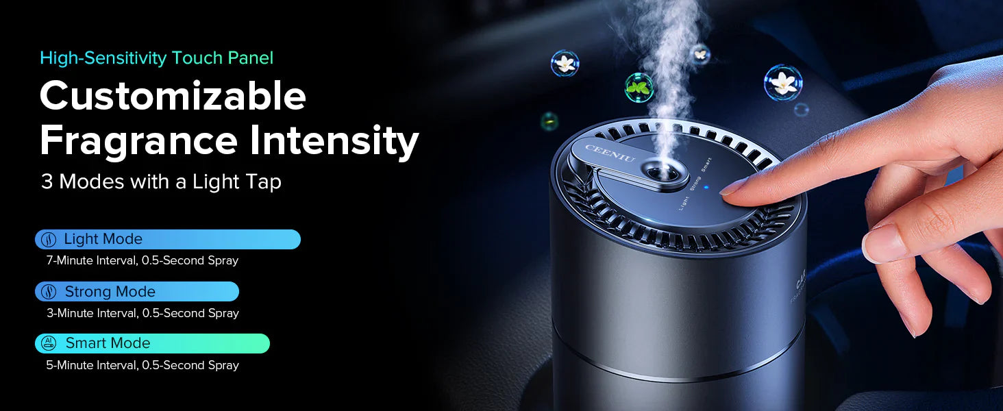 Aktiveras automatiskt när du startar din bil och stänger av när du lämnar—och håller doften konsekvent utan att dränera ström.
