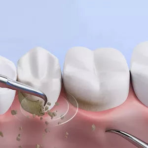 Denne plackborttagare är lämplig för olika tandvårdssituationer. Utrustad med två huvuden - ett platt och ett skarpt - möjliggör den både ytrengöring och rengöring mellan tänderna.