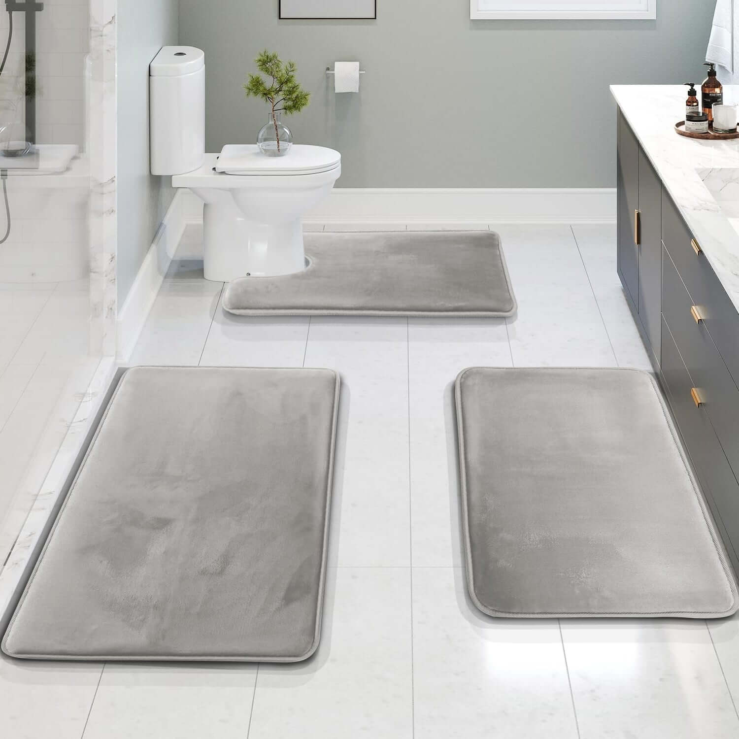 Royallure 3-delad Minnesskum Badrumsmattset – Absorberande, Halkfri & Tvättbar