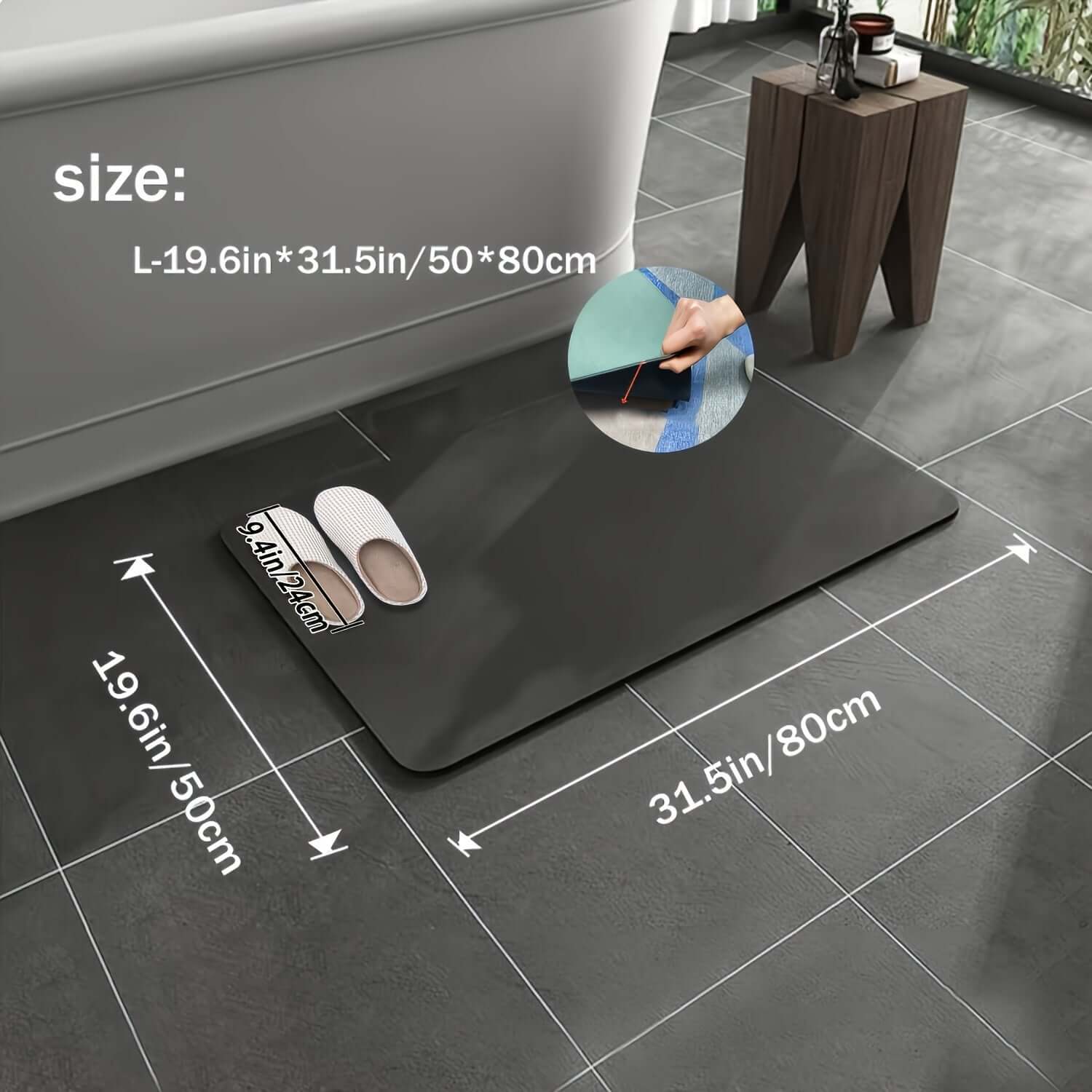 - Material: Diatomityta med halkfri gummibakgrund