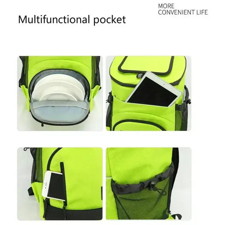 Upplev den ultimata bekvämligheten med vår Royallure Isolerade Ryggsäck Kylväska, designad för att hålla din mat och dryck färsk i timmar. Med avancerad isoleringsteknologi säkerställer denna kylväska att dina saker håller den perfekta temperaturen, oavsett om du vandrar, campar eller njuter av en picknick med familjen. Med en generös kapacitet på 33L kan den rymma upp till 36 burkar och 12 flaskor, vilket gör den till den perfekta följeslagaren för alla dina utomhusaktiviteter. De genomtänkt organiserade facken gör det enkelt att komma åt dina nödvändigheter, vilket säkerställer att du har allt du behöver inom räckhåll. Säg adjö till spill och läckage med vår läckagesäkra foder, som ger pålitligt skydd under dina äventyr. De vadderade, justerbara axelremmarna erbjuder maximal komfort, vilket gör att du enkelt kan bära din kylväska. Oavsett om du planerar en familjeutflykt eller en helgresa, så är denna lätta och hållbara ryggsäck kylväska redo för vilken resa som helst.