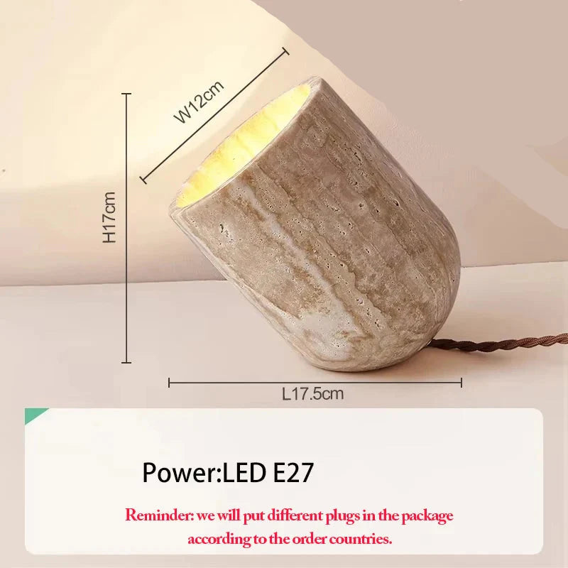 - Unik Naturlig Design: Varje lampa är gjord av naturlig travertin, vilket säkerställer att inga två bitar är lika, och tillför en touch av individualitet till din inredning.