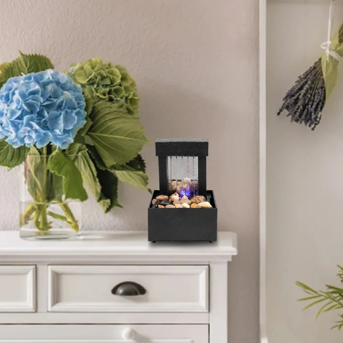 Transformera ditt utrymme till en lugn oas med vår Mini Inomhusbordfontän. Denna vackert utformade fontän kombinerar de lugnande ljuden av porlande vatten med mjukt ljus, vilket skapar en avkopplande atmosfär perfekt för meditation, avslappning eller helt enkelt för att förhöja din heminredning. Den unika konstnärliga designen inkluderar naturliga stenar och en mängd olika stilar, vilket gör att du kan välja den perfekta passformen för ditt utrymme. Oavsett om den placeras i ditt badrum, matsal eller kontor, kommer denna fontän säkerligen att föra med sig lugn och en touch av natur inomhus. Med två praktiska strömalternativ kan du enkelt driva fontänen med antingen en USB-kabel eller 2 AA-batterier (ingår inte). Den inbyggda nedsänkbara pumpen säkerställer ett kontinuerligt vattenflöde, vilket främjar en renare och säkrare miljö. Den mjuka belysningen från fontänen förbättrar atmosfären och gör den idealisk för yogapass eller fridfulla kvällar hemma. Låt de lugnande ljuden och synen av vår bordfontän hjälpa dig att koppla av efter en lång dag.