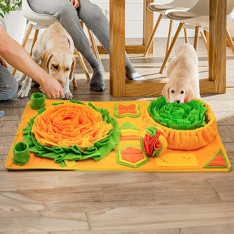 Lås upp en värld av roligheter och mental stimulans för din fyrbenta vän med Royallure Multi-Functional Snuffle Mat för hundar. Denna innovativa matta är designad för att engagera din hunds naturliga sökinstinkter, vilket ger timmar av underhållning samtidigt som den förbättrar deras luktsinne. Dölja helt enkelt din hunds favoriter godis inom lagren av mattan, och titta när de sniffar och söker, vilket förvandlar måltiden till ett spännande äventyr. Perfekt för hundar i alla storlekar och raser, denna snuffle mat bekämpar tristess och främjar hälsosam mental träning. Tillverkad av mjukt, hållbart bomullstyg, efterliknar snuffle matten känslan av gräs, vilket säkerställer en bekväm upplevelse för ditt husdjur. Den är skonsam mot deras nos och ansikte, vilket minskar friktionen som är förknippad med traditionella matskålar. Dessutom hjälper det tuggmotståndiga materialet till att rengöra tänderna och minimera risken för tandproblem. Enkel att rengöra och förvara, denna snuffle mat är tvättbar i maskin, vilket gör den till ett praktiskt tillskott i din hundleva.- Engagerande Godisutdelare: Uppmuntrar din hund att använda sitt luktsinne, vilket ger både mental och fysisk träning.