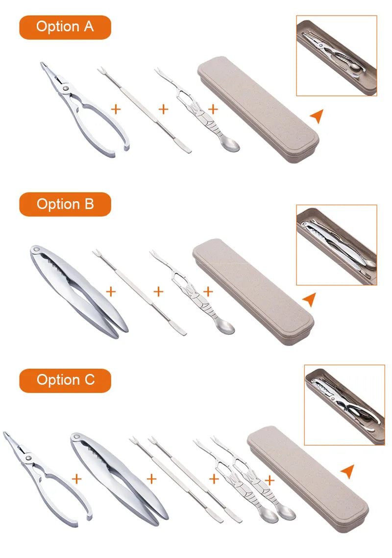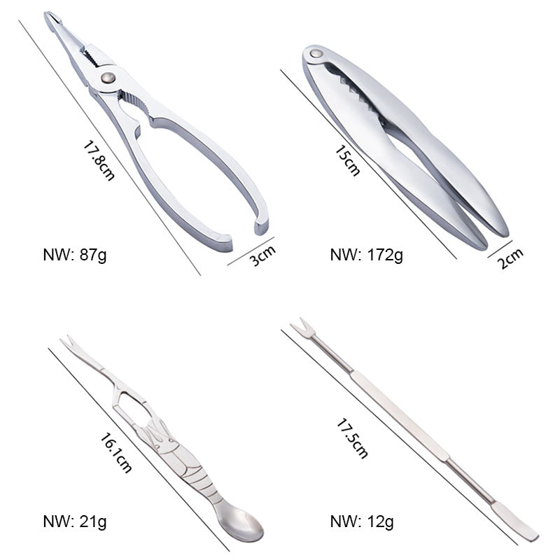 • Ergonomisk design: Bekvämt utformade verktyg som är lätta att hålla och använda, vilket gör skaldjursförberedelserna enkla.