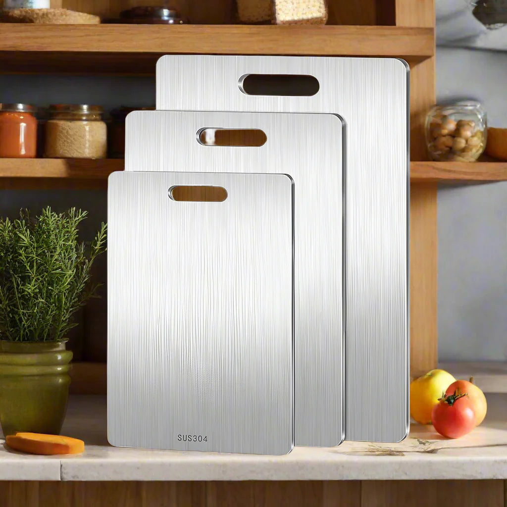 Titanium Kitchen Chopping Board är byggd av högkvalitativt titan, vilket säkerställer att den står emot de tuffaste snitten. Den dubbel-sidiga ytan gör att du kan förbereda olika livsmedel utan korskontaminering. Säker för alla livsmedelstyper och lätt att rengöra, vilket gör ditt liv enklare.