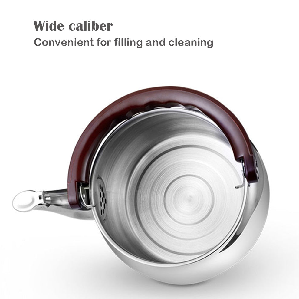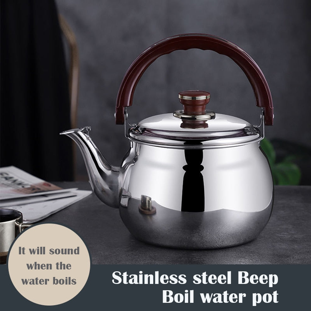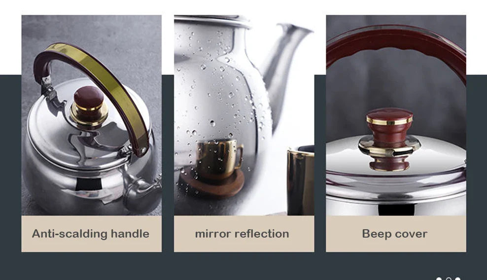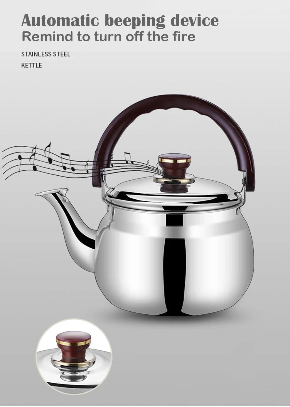 Upplev den perfekta blandningen av stil och funktionalitet med vår visslande vattenkokare i rostfritt stål. Designad för hållbarhet och användarvänlighet, är denna vattenkokare tillverkad av förtjockat rostfritt stål, vilket säkerställer att den står emot påfrestningarna av daglig kokning samtidigt som den ger ett eleganta inslag i ditt kök. Vattenkokaren har ett högt, klart visselljud som meddelar när ditt vatten är klart, vilket eliminerar gissningsarbetet och låter dig fokusera på din matlagning. Med sitt ergonomiska, värmeresistenta handtag är det säkert och bekvämt att hälla, även när vattenkokaren är varm.
