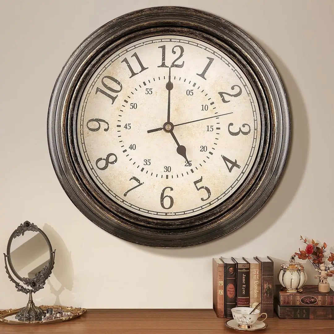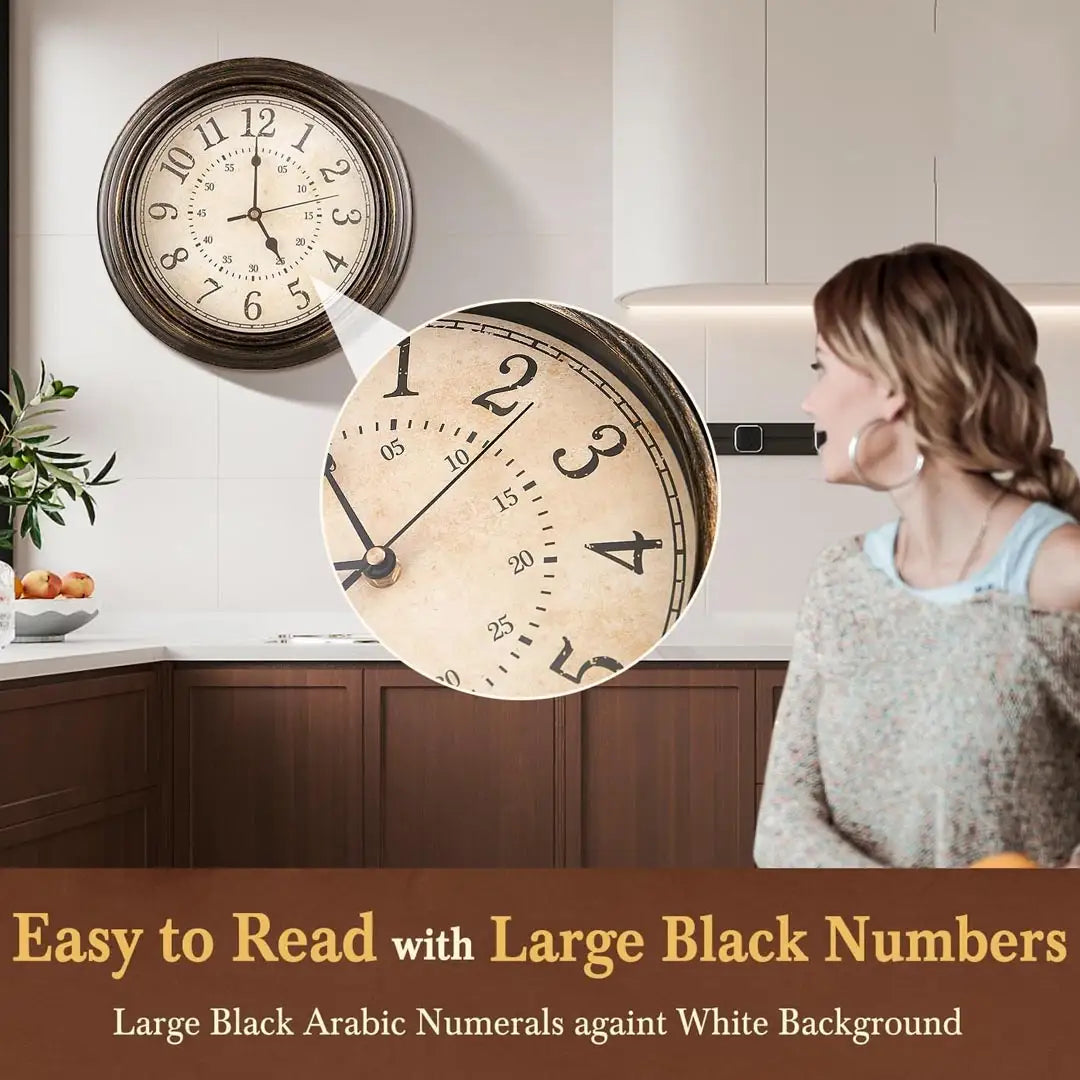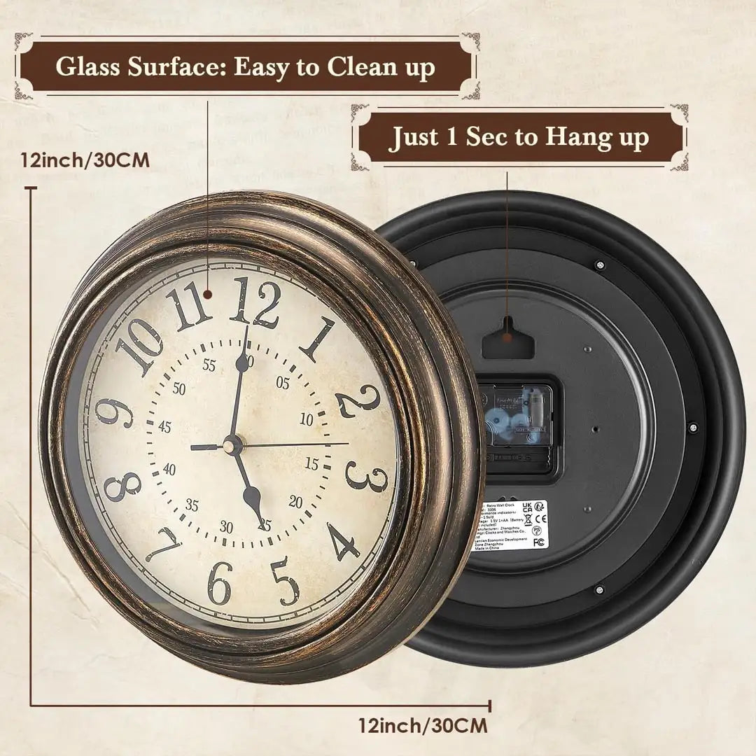 Royallure Vintage Tyst Kvarts Väggklocka – Icke-Tickande Svep, Antik Design