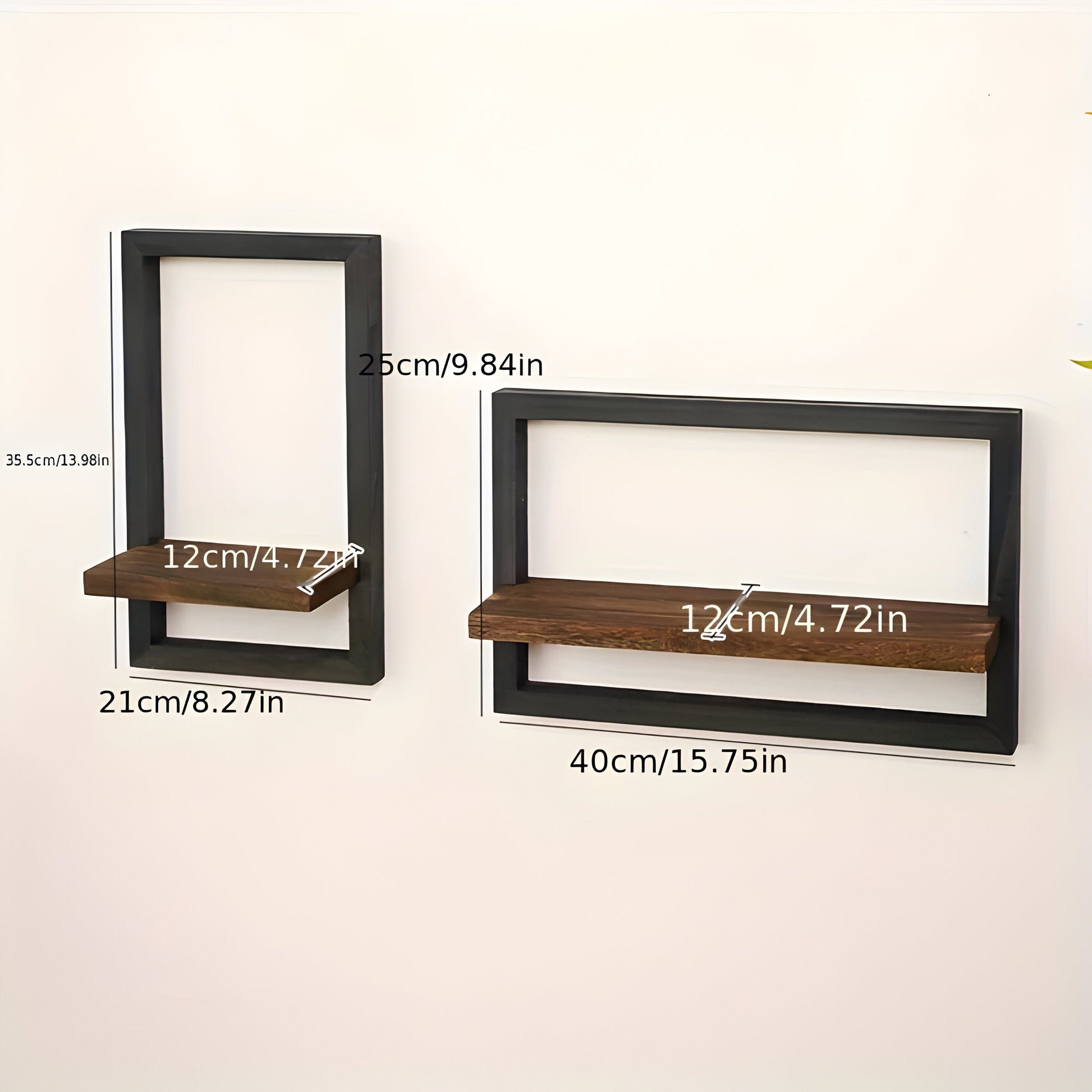 Med RustiFrame Set får du en bit av vintages känsla och organisk elegans i ditt hem. Detta styliga träväggsdisplayset med fyrkantig design är den perfekta scenen för dina favoritbilder, postkort eller små dekorelement. Kombinationen av svart metall och mörkt trä skapar en elegant kontrast som omedelbart fångar ögat – oavsett om det är i vardagsrummet, sovrummet eller hallen.
