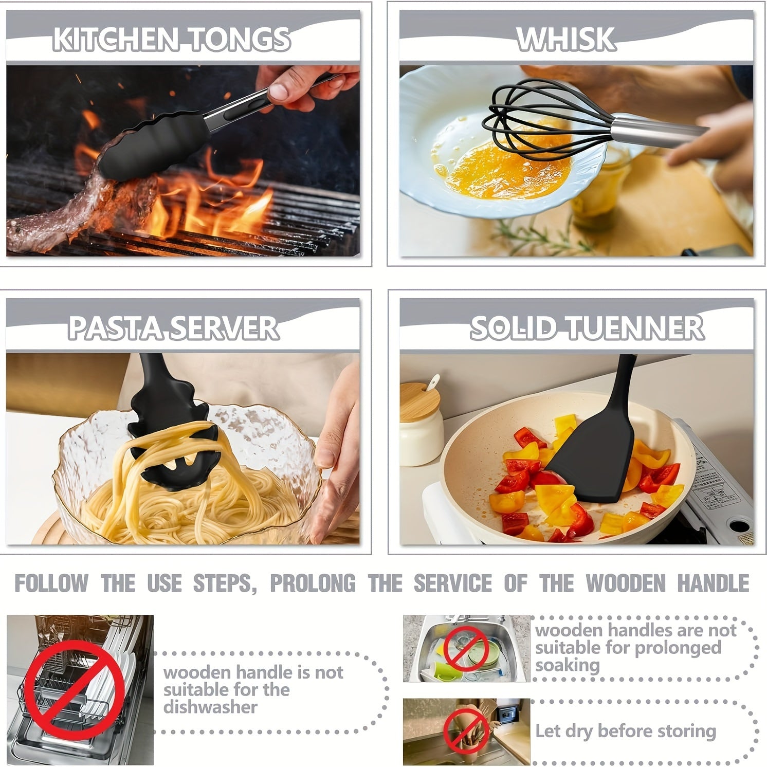 Uppgradera ditt kök med detta **kompletta silikon kökredskap set** – perfekt för både daglig matlagning och speciella helgdagar. Tillverkat av **värmebeständigt silikon** och designat med **bekväma trähandtag**, är dessa redskap säkra för **non-stick köksutrustning**, lätta att rengöra och byggda för att hålla. Oavsett om du steker, bakar eller blandar, håller detta stiliga och praktiska set ditt kök välutrustat och organiserat.