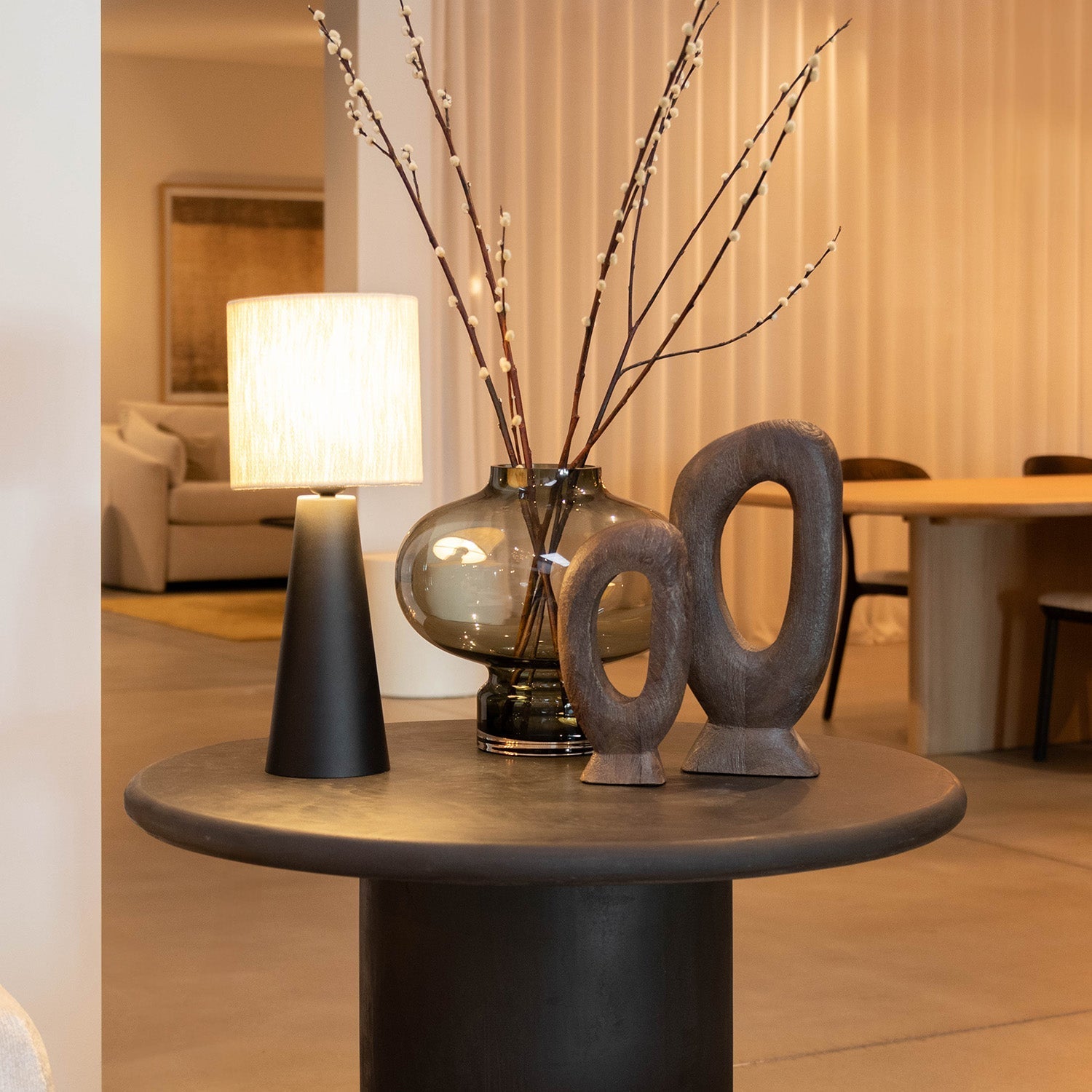 Bami bordlamp är ett tidlöst tillskott till ditt hem. Lampan har en konisk bas av svart metall och en handvävd cylinderformad lampskärm av grovt strukturerat bomull, som sprider ett varmt och mysigt ljus. Lampan är utrustad med en diffuser, så att du inte ser rakt in i lampan och ljuset får en mjukare, varmare framtoning. Bami bordlampan är noggrant detaljerad. Det som gör denna lampa unik är det naturliga och ojämna spelet av ljus och skugga. Denna bordlampa finns även som golvlampa.