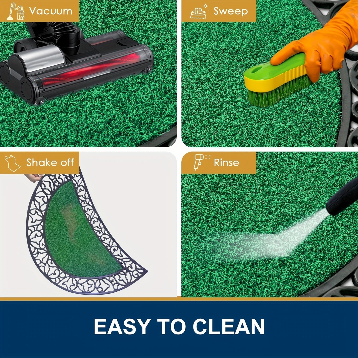 Denna slitstarka PVC-dörrmatta är det perfekta valet för stora dörrar. Den halkfria designen säkerställer att mattan ligger stadigt på plats, även med tungt fottrafik. Den halvkretsformade mattan är utformad för att effektivt ta bort snö, smuts och jord, vilket håller ditt hem rent. Det absorberande materialet gör det enkelt att fånga smuts och fukt, och mattan är lätt att rengöra, vilket gör den idealisk för daglig användning. Den moderna designen passar perfekt i både inomhus- och utomhusmiljöer.