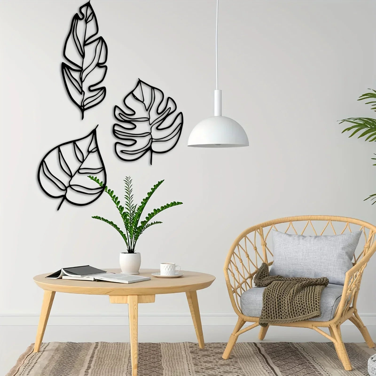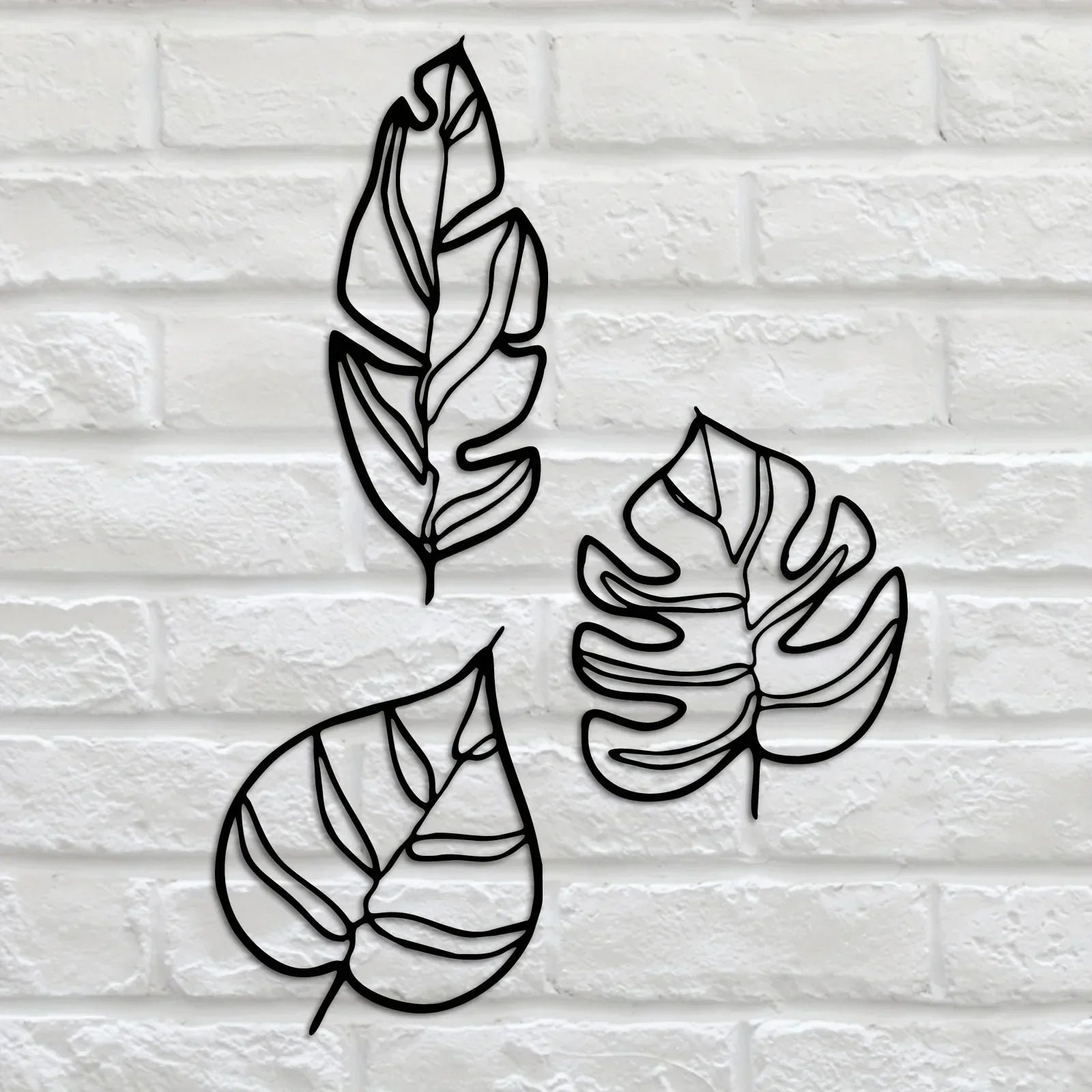 Lägg till en touch av tropisk lugn i ditt hem med denna stiliga uppsättning av tre blad. Varje bladdesign är inspirerad av den rika floran i tropikerna, vilket ger din inredning ett friskt, naturligt utseende. Dessa väggdekorationer är perfekta för att skapa en lugn och inbjudande atmosfär, idealisk för vardagsrum, sovrum eller kreativa utrymmen. Låt dig inspireras av naturens enkelhet och skönhet i ditt eget hem.