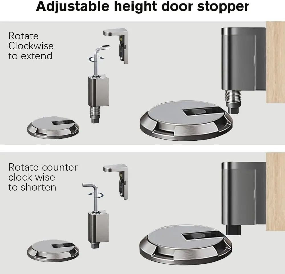När den är engagerad, låser stoppare på ett fast sätt, vilket förhindrar att din dörr rör sig även mot starka drag eller vindpustar. Inga fler oavsiktliga smällar eller dörrskador.