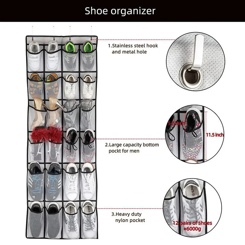 Ordivo hängande skoorganisator är den smarta lösningen för mer ordning i hallen, sovrummet eller garderoben. Med 24 fack erbjuder den plats för upp till 12 par skor eller mindre föremål som strumpor, borstar eller handdukar. Enkelt att fästa på Carvallo eller vägg – helt utan verktyg eller borrning!