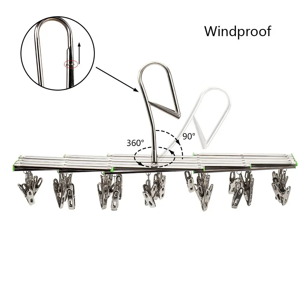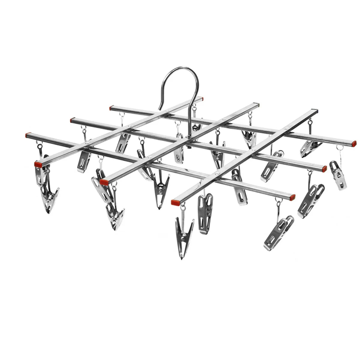 Carvallo DryFold rostfritt stål | Fällbar klädtork med 20/35 klämmor | Vindskyddad & platsbesparande | För strumpor & underkläder