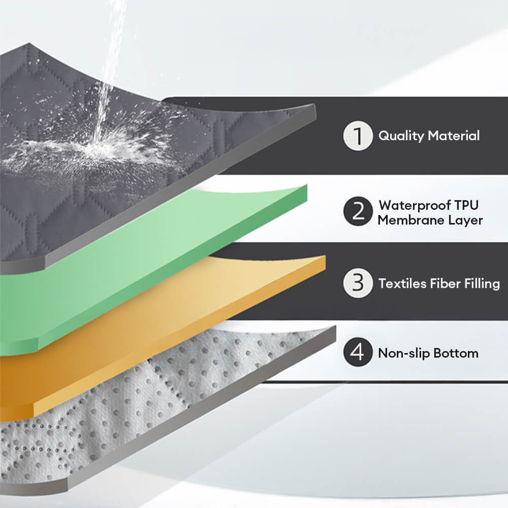- Vattentät Skydd: Skyddar möbler från spill, husdjursolyckor och fläckar.