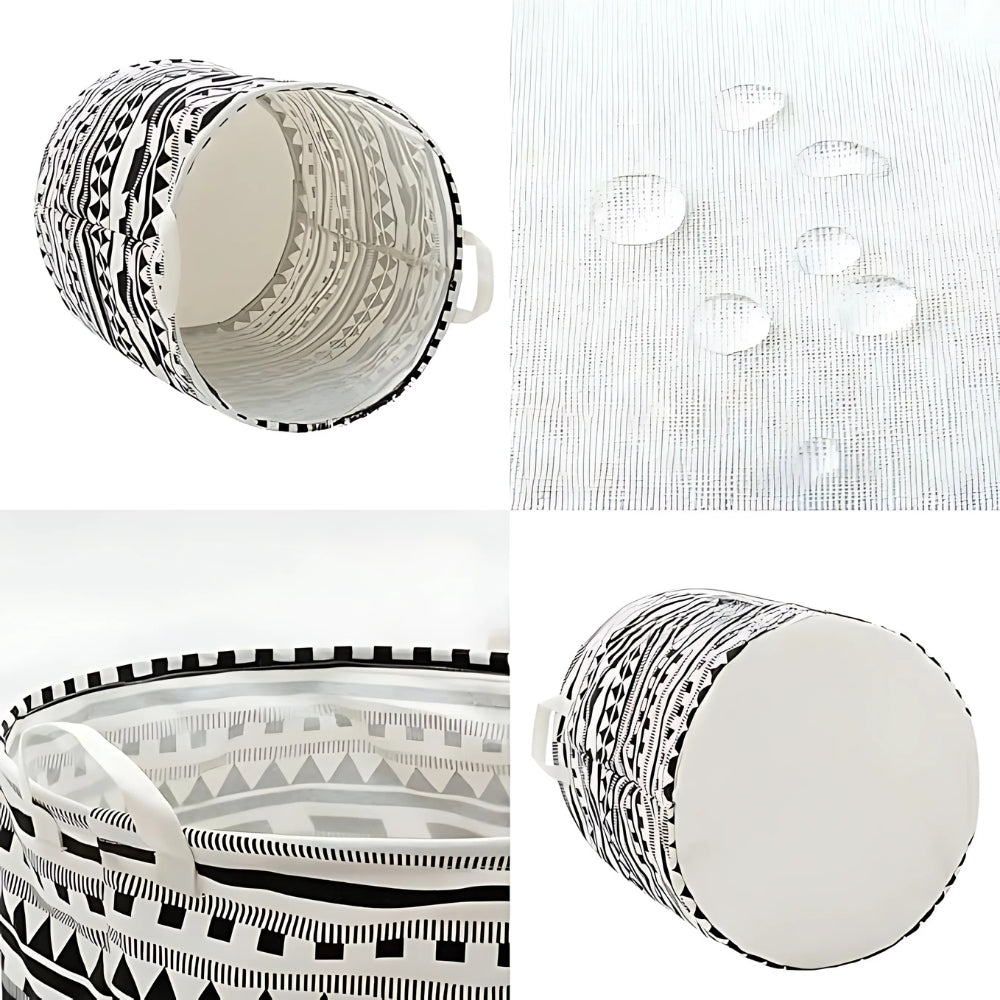 Vexa Fällbar Tribal Tvättkorg erbjuder en stilren lösning för vardagligt bråte. Med ett slående svart och vitt geometriskt mönster, håller denna förvaringskorg med stor kapacitet din tvätt, leksaker eller nödvändigheter prydligt undanlagda. Dess runda, fällbara design och hållbara handtag gör den till en mångsidig organiserare för vilket rum som helst – från barnrum till badrum. Funktionell, dekorativ och platsbesparande, det är ett måste för modernt hem.