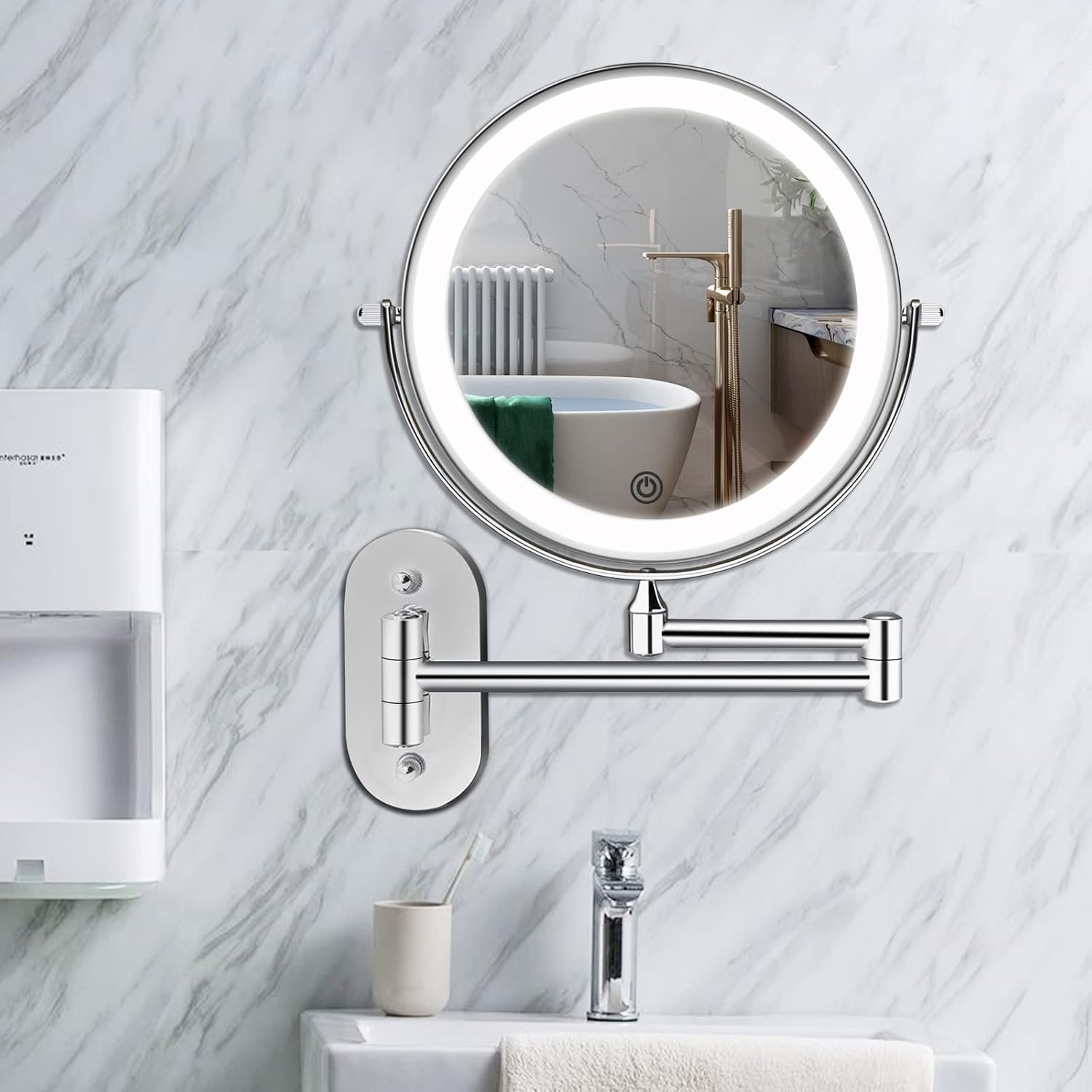 Uppgradera din skönhetsrutin med denna eleganta LED väggspegel designad för makeup, vård av utseendet och vardagsanvändning. Med sin moderna kromfinish, justerbar förstoring och stark LED-belysning gör denna spegel det enkelt att se varje detalj klart. Det inbyggda uppladdningsbara batteriet och väggmonteringsdesignen ger stil och bekvämlighet till vilket badrum eller sminkbord som helst.