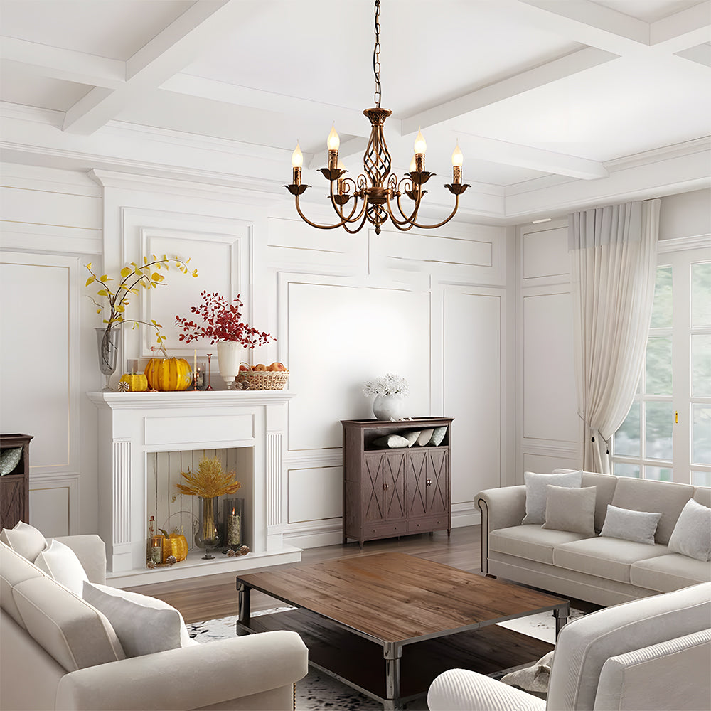 Vintage Bronze Chandlier | 4/6/8 Ljus Matsal Takarmatur i Järn | Brick by Brick